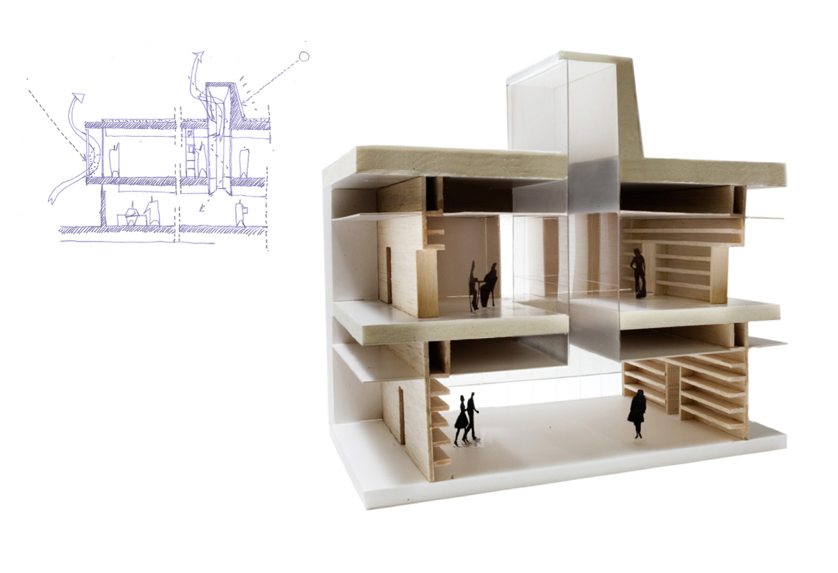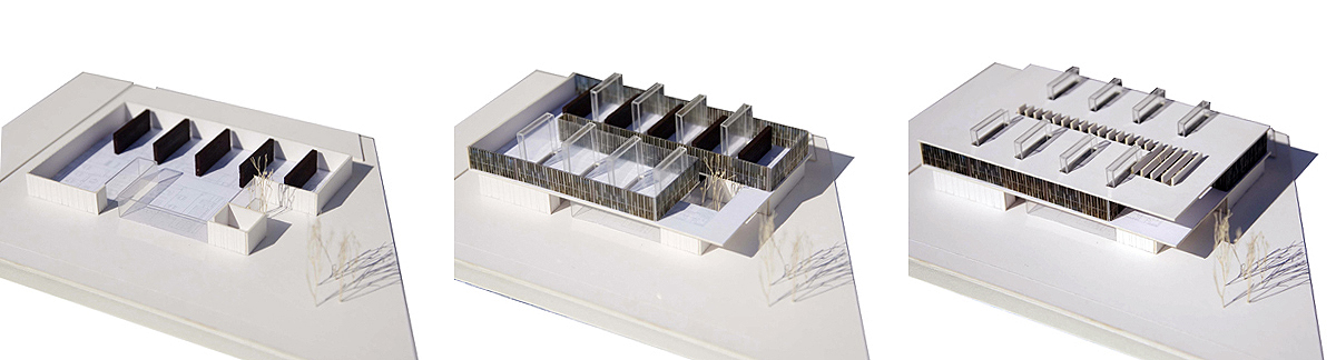 Apilamiento. Este proyecto es, sobre todo, un ensayo de almacenamiento. Las sedes judiciales son el lugar de encuentro de dos mundos: el de los actos públicos, representados por las salas de vistas, registro civil, salón de bodas…y el de los actos jurídicos: juzgados, fiscalía, archivos…. En este lugar el funcionario ejerce de maestro de ceremonias que acerca ambos universos. Entendemos que el primero de los mundos es abierto y ceremonial, por lo que proponemos espacios diáfanos, transparentes y con continuas miradas al exterior, a lo público. El segundo mundo, el del ajetreo funcionarial, aparece abarrotado de documentos, protegido y, deseablemente, ordenado, por lo que proyectamos equiparlo con una serie de muebles que, alternativamente, almacenan documentos, instalaciones y luz natural. Además, la oportunidad de un edificio como el de la nueva sede judicial es también la del lugar que lo acoge. Procuramos un lugar público de conciliación entre el edificio y la ciudad, un espacio previo que deforma el cerramiento a cota rasante, ahuecando la planta baja, para favorecer los accesos diferenciados a los distintos usos, hasta meterse dentro del edificio y provocar una honda grieta que lo atraviesa y anuncia el funcionamiento del mismo.
