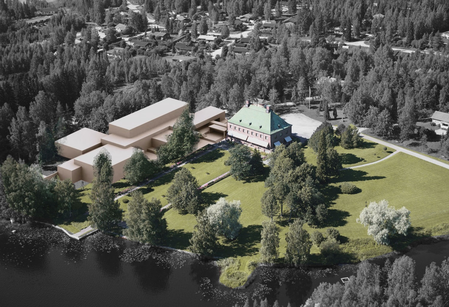 The Serlachius Museum Gösta extension will stand on a cape defined by the waterways at Pirkanmaa, approximately 3km from the centre of Mänttä. The aim of the proposal is to preserve the Manor as a point of reference dominating the spacious approach views from all directions. Hence the prime design consideration was to maintain the architectural values of Joenniemi Manor as well as the open quality of the landscape surrounding it: the generous views, the landscape of gardens and green spaces, the grove, the tree-lined paths… Following this fundamental principle, the new extension wil reveal itself gradually to the visitor as she approaches the museum through the park, occupying the space between Joenniemi Manor and the grove on the building’s west side and thus preserving the original views and landscape values.