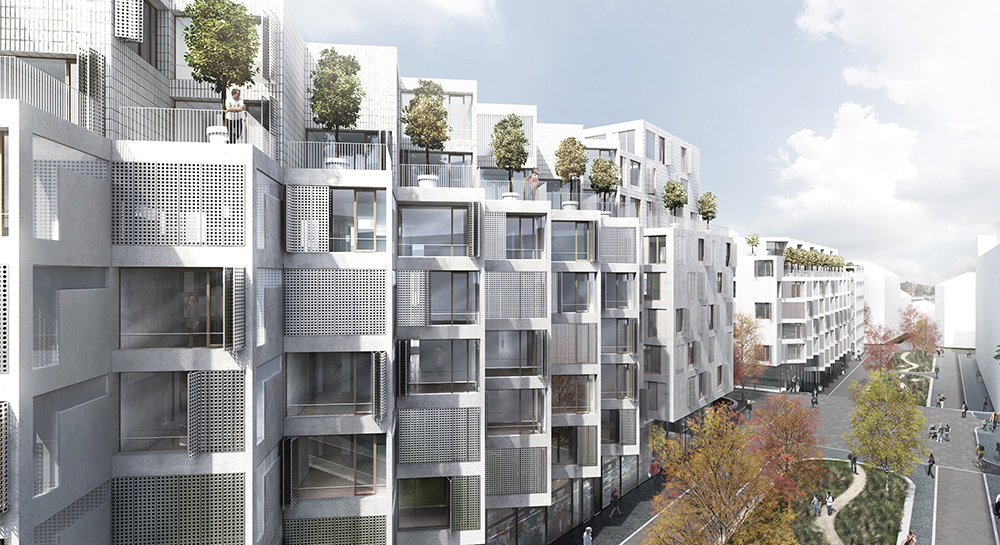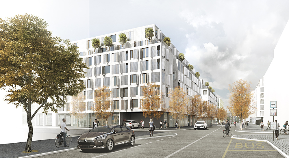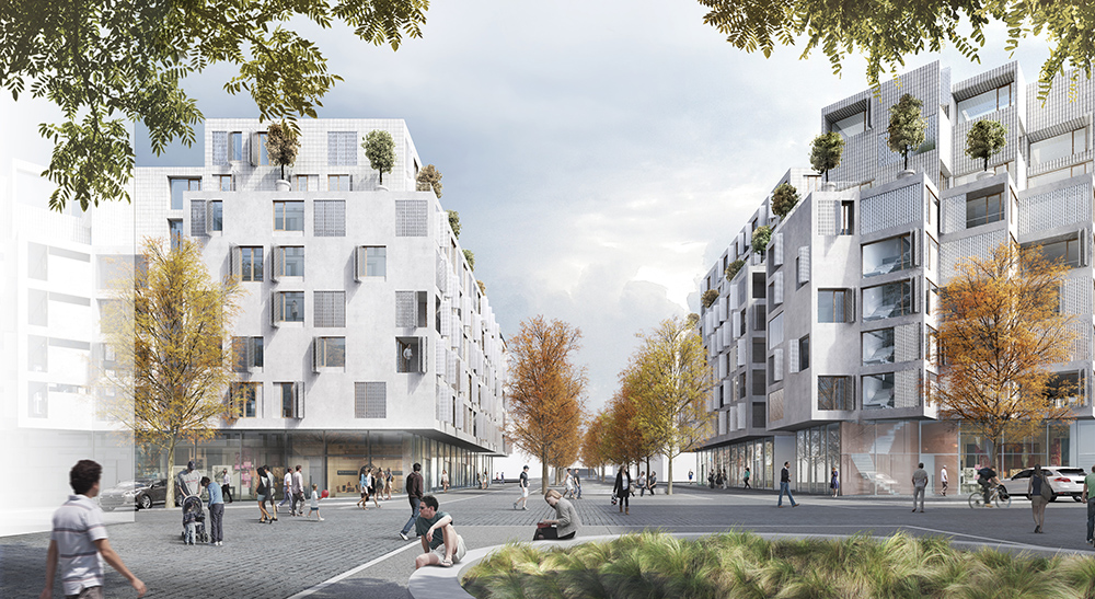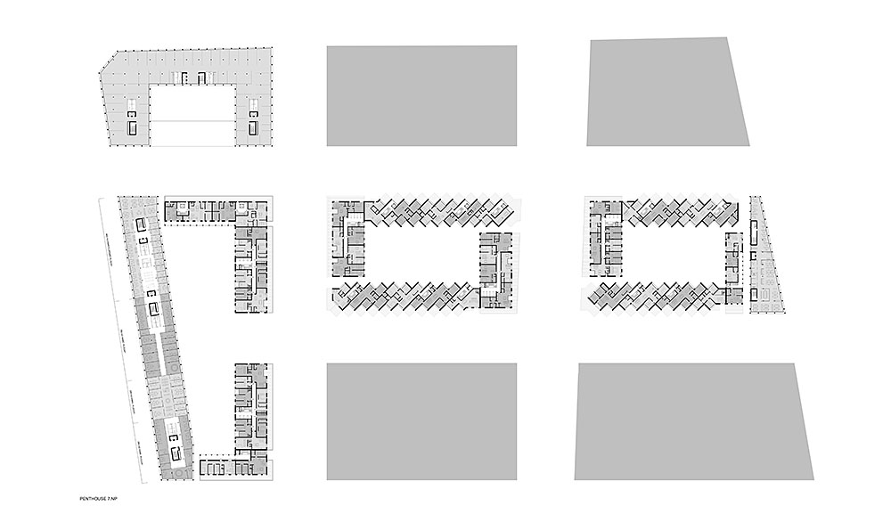 Our proposal SMÍCHOV CITY – NORTH integrates a wide range of functional and spatial qualities focused mainly on housing, complemented by a shopping centre, school and pre-school facilities and administrative and commercial zone, aiming to support and add to the diverse character of the area. Each city block has an individual adaptable character and different architectural expression. The diversity of housing typologies, including dual aspect apartments and duplexes with private balconies and roof terraces is reflected in the modular plan, allowing creation of different sizes of units through combination of individual modules. The urban structure is based on continuous perception of space. The courtyards are publicly accessible through passages located in diagonal corners of each block, which can be easily secured overnight. The courtyard spaces are flexible and their individual character will evolve from the requirements of the residents and occupiers of each block. Active frontages and multifunctional courtyard spaces create an ideal setting for community use as well as a new destination for visitors and workers commuting into the area. Our approach aims to engage future users and allow them to develop a unique relationship and responsibility towards the place where they will live, work or visit.