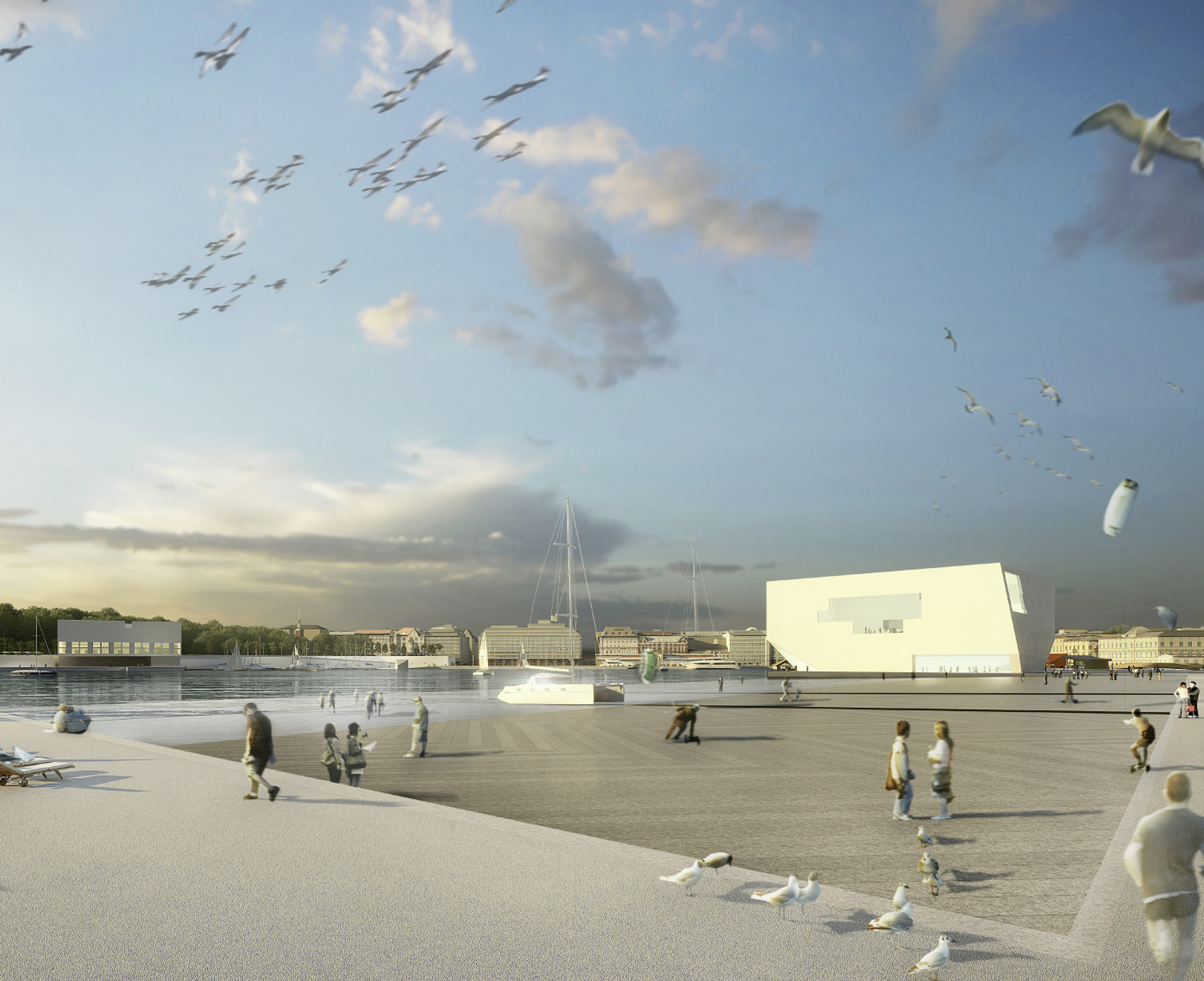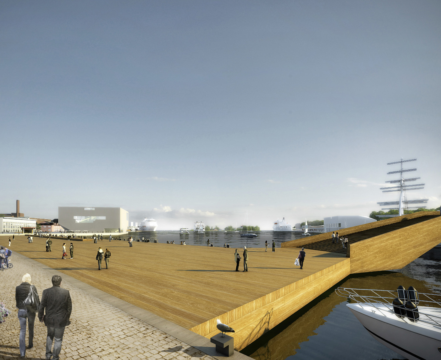 The vastness of the harbour spaces are a luxury worth of preservation. A rhythm of precisely located spaces will be established, opening up for a sensual perception of the poetry of Wide. The robust simplicity suggested by the site generates places ready to adopt changing terms of use. The projectʻs spacial structure preserves the local characteristics and seeks for their sustainable development. To unfold a great variety of atmospheres and activities it provides a number of facilities robust enough to be modified through public participation procedures. With a design both concise and generous it plays on the poetic impact of the placeʻs wideness. Carefully proportioned spaces and chosen materials will enhance the sensual perception of the spirit of the place.