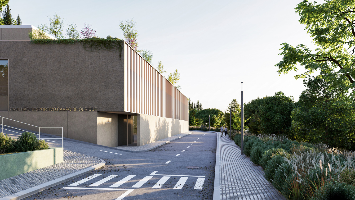 ☉ Sports Pavilion in Campo de Ourique is a proposal by co·rp arquitetos for Lisboa Occidental SRU designed in 2024. It is located in Lisbon Portugal in an outskirt setting. Its scale is medium with a surface of 3.000 sqm. Key materials are concrete and vegetal. Opere Visual collaborated as visualizer. Concepts such as section topography viewpoint and terrace are explored.