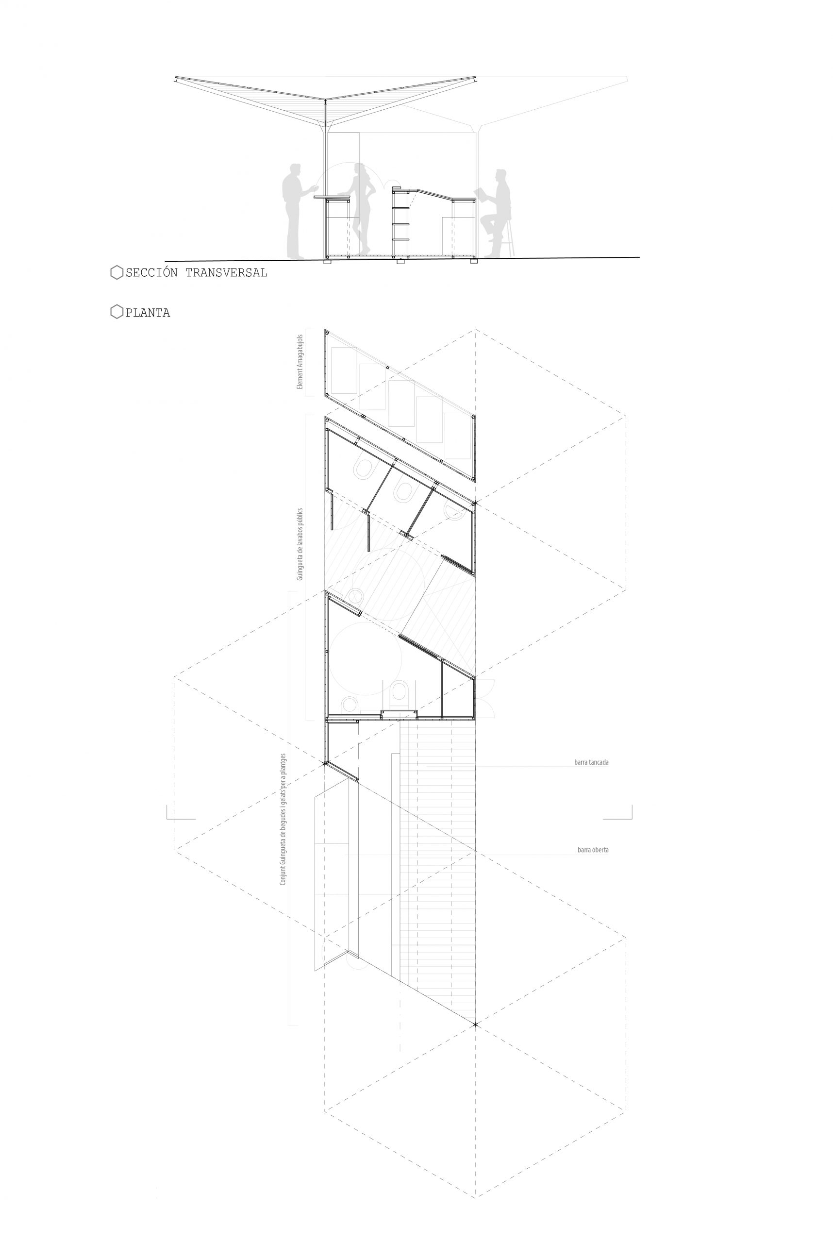 ☉ Stall competition is a proposal by X+X and F451 arquitectura for Ajuntament de Barcelona designed in 2012. It is located in Barcelona Spain in a seaside and park setting. Its scale is extrasmall. Key material is metal. Concepts such as aggregation and origami are explored.