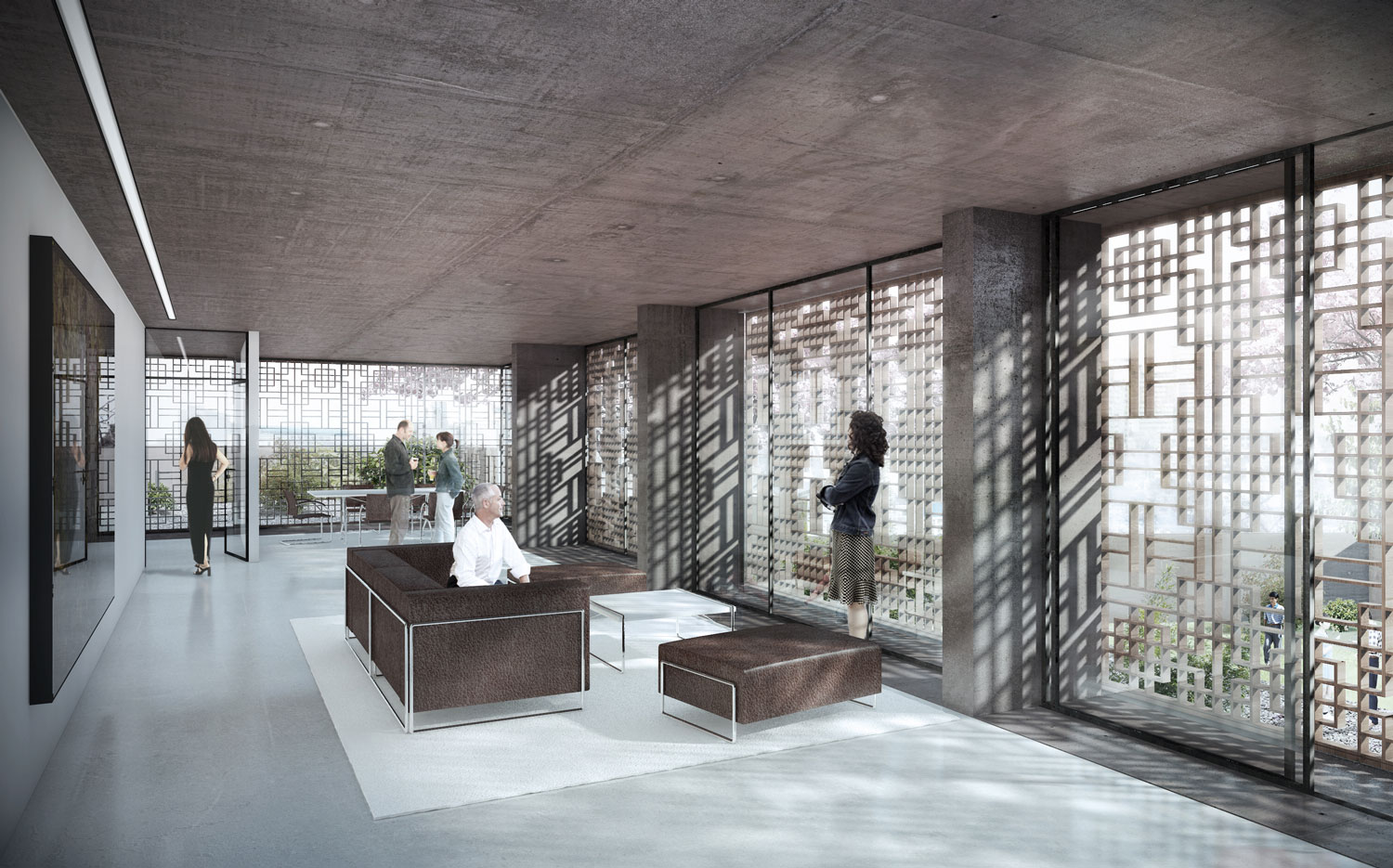 ☉ Suisse embassy in Seoul is a proposal by Brune Architekten designed in 2012. It is located in Seoul South Korea in a high density setting. Its scale is medium. Key material is concrete. The concept of lattice is explored.