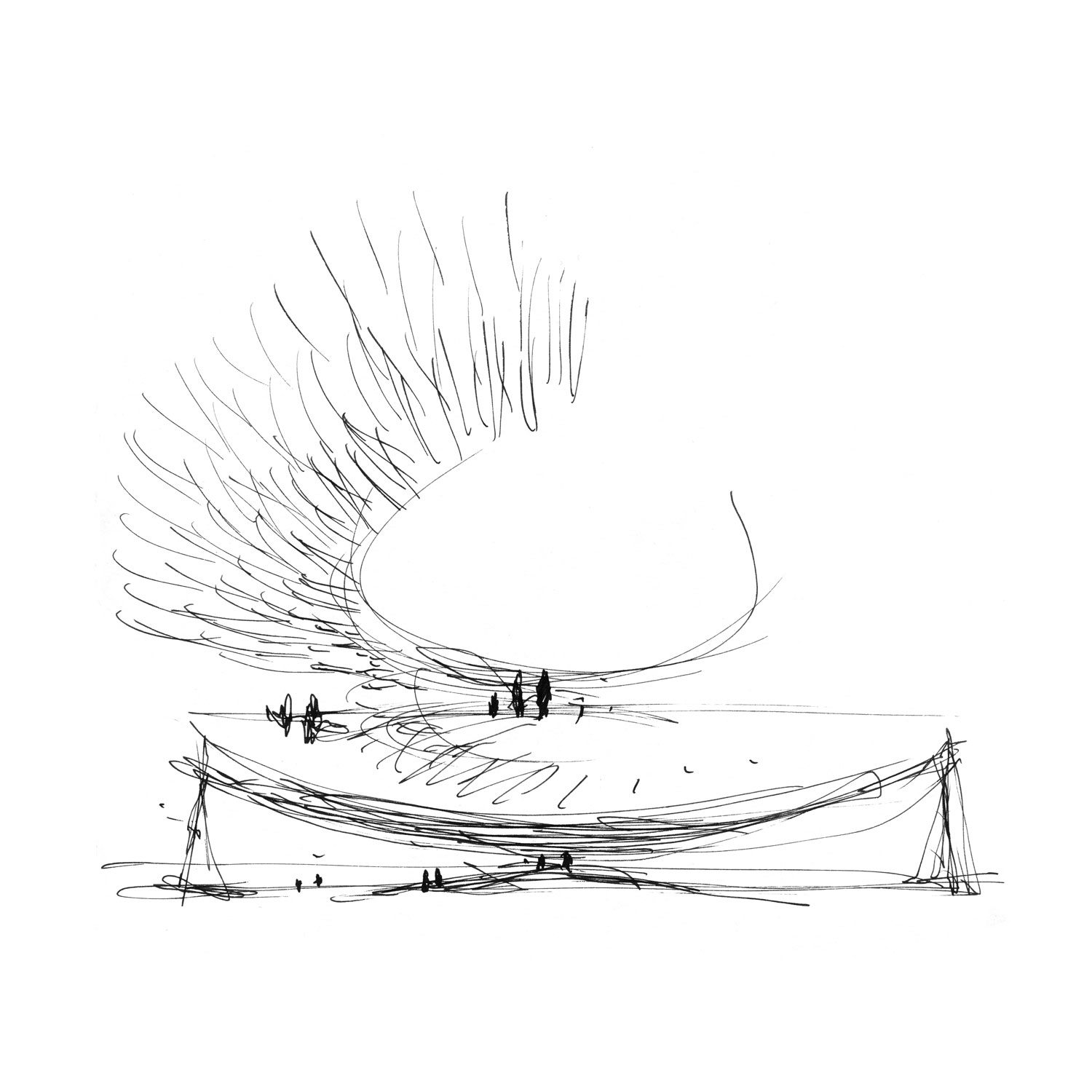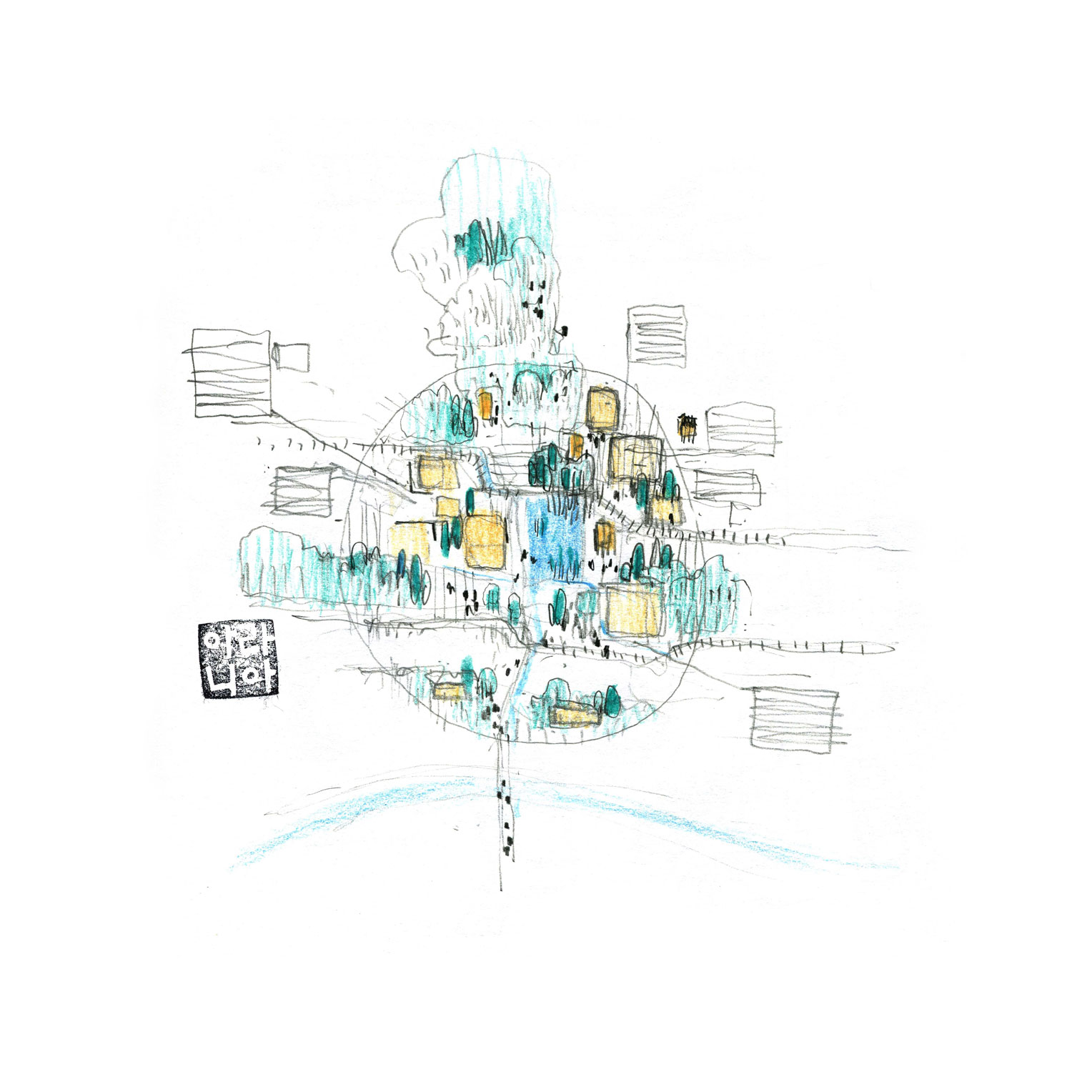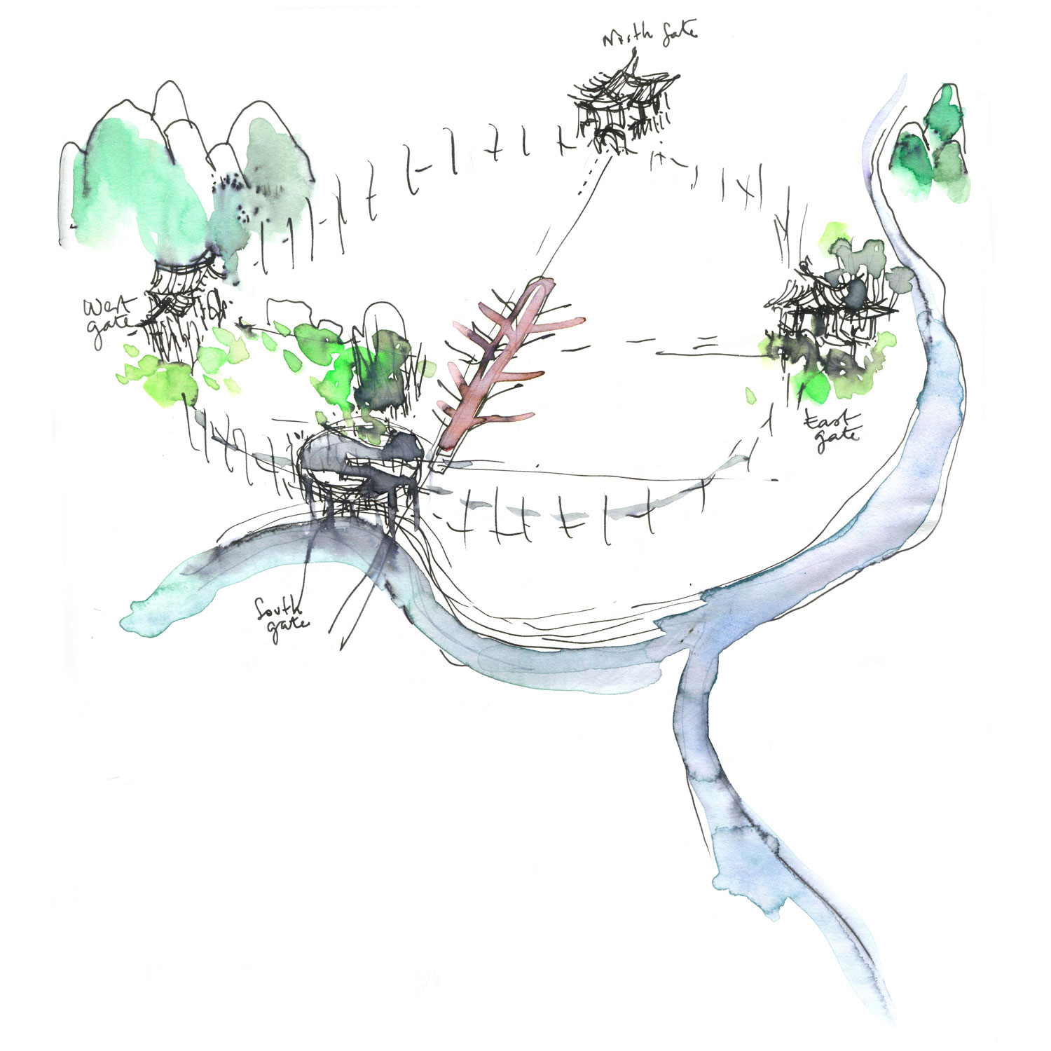 The main idea of the project is the representation of the old city. Simulating the structure of the walled city of Suncheon, the proposal aims to apply in a new way the primary elements of it, which a: the fortification, the four gates, the main arteries and the natural environment. The overall intervention combines these major elements underneath a protection round shaped veil. The shape derives from the original curved shape of the old city in a simple way and is adapted to the specific site. Additionally through the uniqueness of its shape, it arises as a point of reference along the entire region, a design that will invigorate city’s overall impressions. It is not aimed to create an iconic building but to propose a sort of fragments that can grow and be adjusted in future changes and needs. The idea of the city fortification is translated into this big veil that protects the entire complex and generates a continuous limit around it. The roof covers both site A and B serving as a merging factor that exceeds the road barrier site C and contributes to a consolidated result.