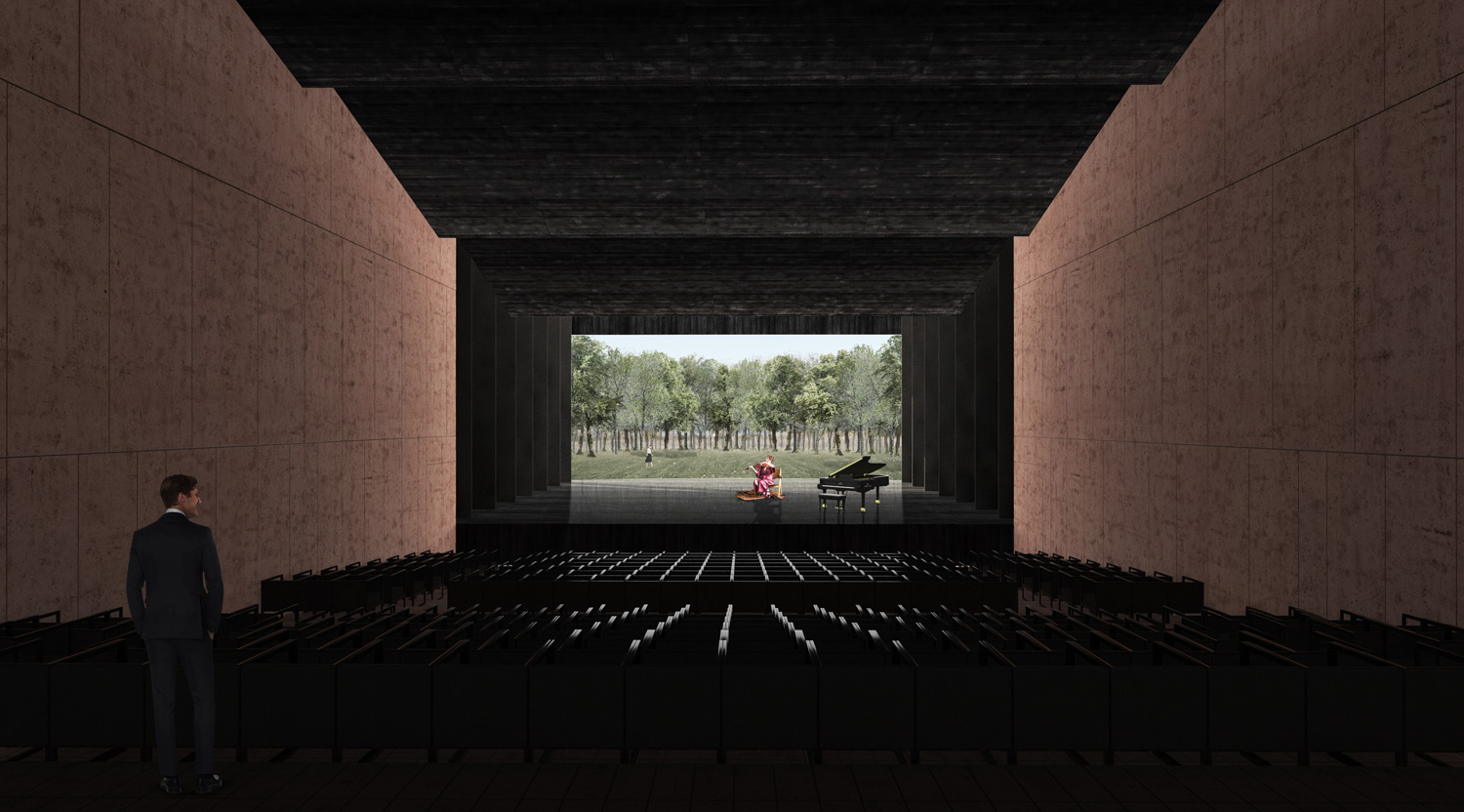 Il progetto si fonda sulla ricerca di una interrelazione funzionale, formale e contemplativa fra il teatro e il parco e fra la città e la campagna. L’integrazione fra lo spazio naturale del parco e quello costruito del teatro ha lo scopo di sviluppare nuove possibilità di fruizione, sia da parte degli attori che da parte degli spettatori.