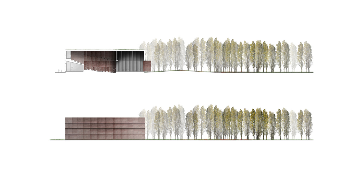 ☉ Teatro comunale e parco pubblico nel Comune di Albignasego is an honour mention proposal by Gianluca Facchinelli and Giada Saviane for Albignasego Municipality designed in 2018. It is located in Albignasego Italy in a park setting. Its scale is medium with an estimated budget of 10.000.000 €. Key materials are ceramic and wood. Review the 2 proposals for the same competition.