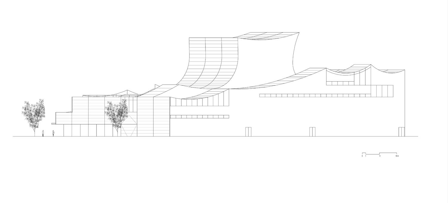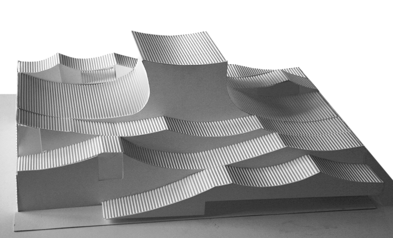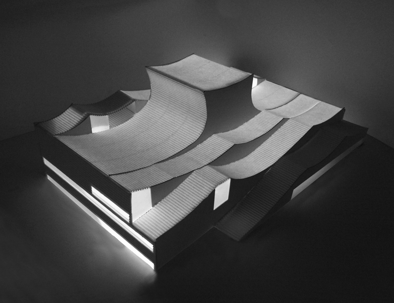Hemos entendido que hacer parcialmente accesibles las cubiertas de la construcción dotándolas de un cierto movimiento, permitía intensificar la relación con el paisaje pero también multiplicar las actividades del centro fomentando la creatividad espontánea. El conjunto edificado duplica su vida transformándose en un equipamiento colectivo que el ciudadano hará suyo de múltiples maneras relacionadas con el paisaje, el deporte, el ballet, la gimnasia, la danza, el cine o simplemente el aislamiento y la contemplación. Este es en resumidas cuentas el proyecto que proponemos y la dualidad que lo resuelve: compatibilizar la más estricta adaptación a los requerimientos programáticos de su interior con la generación de una topografía activa, en resonancia con el lugar, dando forma a lo que Stan Allen ha denominado recientemente “Landform building”, una modalidad dual, paisajística y arquitectónica, en la que los requerimientos diferenciados del programa y el lugar se apoyan mutuamente para activar y hacer memorable la experiencia de la cultura y el paisaje, unificando naturaleza y artificio a través de la intensificación de la experiencia.