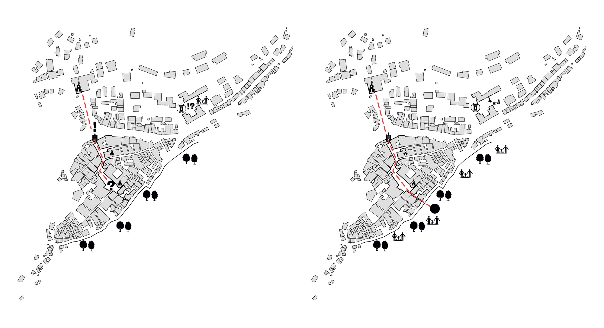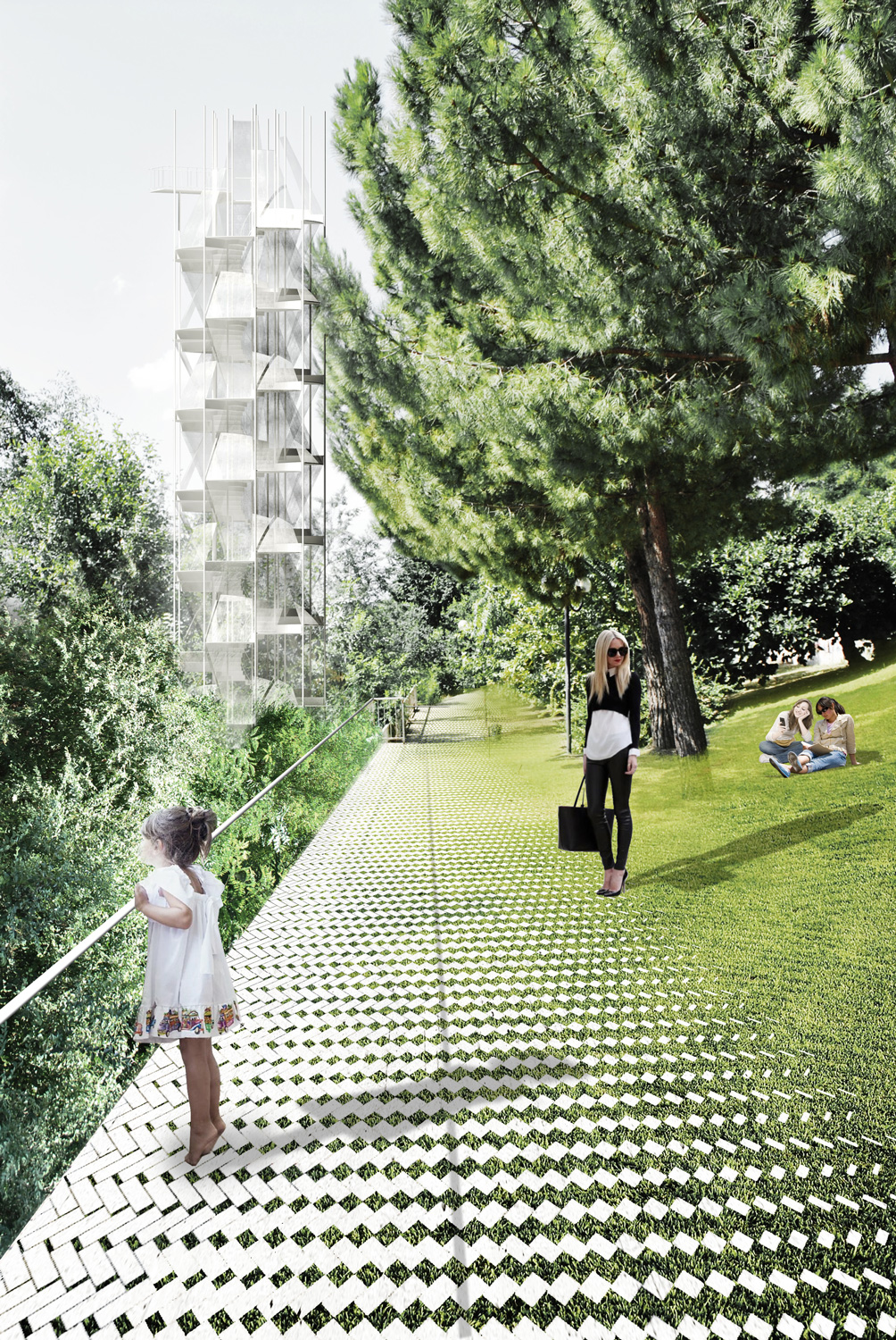We have to undestand that its authentic materiality is irremediably lost, but we also need to keep in mind that its immaterial values still exist. People‘s memory of that tower is connected to the park, where they were holding events and festivals, where the tower was more of a landmark than a building. The inhabitants are longing for the image because of what the image brought with it. Given this premises, we found another place to host the new tower, a place with the same potential that the old one used to have: green space, views towards the surroundings, proximity to the town center. On the other hand, we need a connection to the original place, in order no to lose the authenticity. For this reason, we chose to highlight the remains of the old tower, that would be researched and recovered, and to design what is left of the former park, just to show the testimony of the past. The last element to this puzzle will be the revival of the sleeping center of Pianella, by introducing these regenerating arteries that would connect the focus points of the city. The result would bring a new image to Pianella, a revived communitary space that tells a lot about the history and the identity of the settlement and a more tourist-friendly center aiming to fuel the economy. Therefore, we hope to prove that architecture goes beyond designing a simple object and that only by including the interpretation and the regard for the social issues it will truly reach its true purpose: positive change.