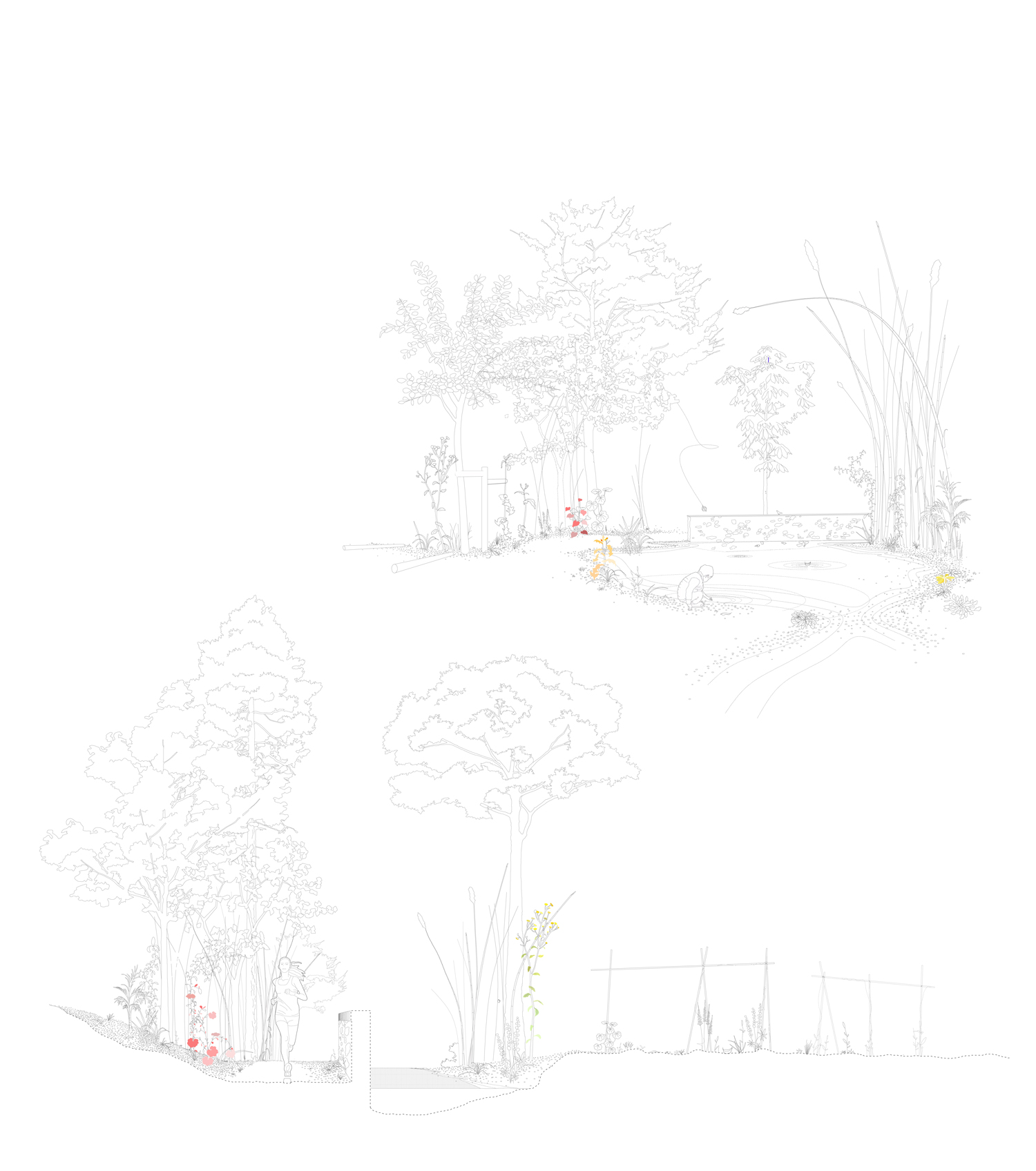For the first level, the attention is all on nature. Willing to reintroduce the natural world to the city, this doorway acts as a captivating element: a social point that gives information, activities and resources to those interested in experiencing the park.