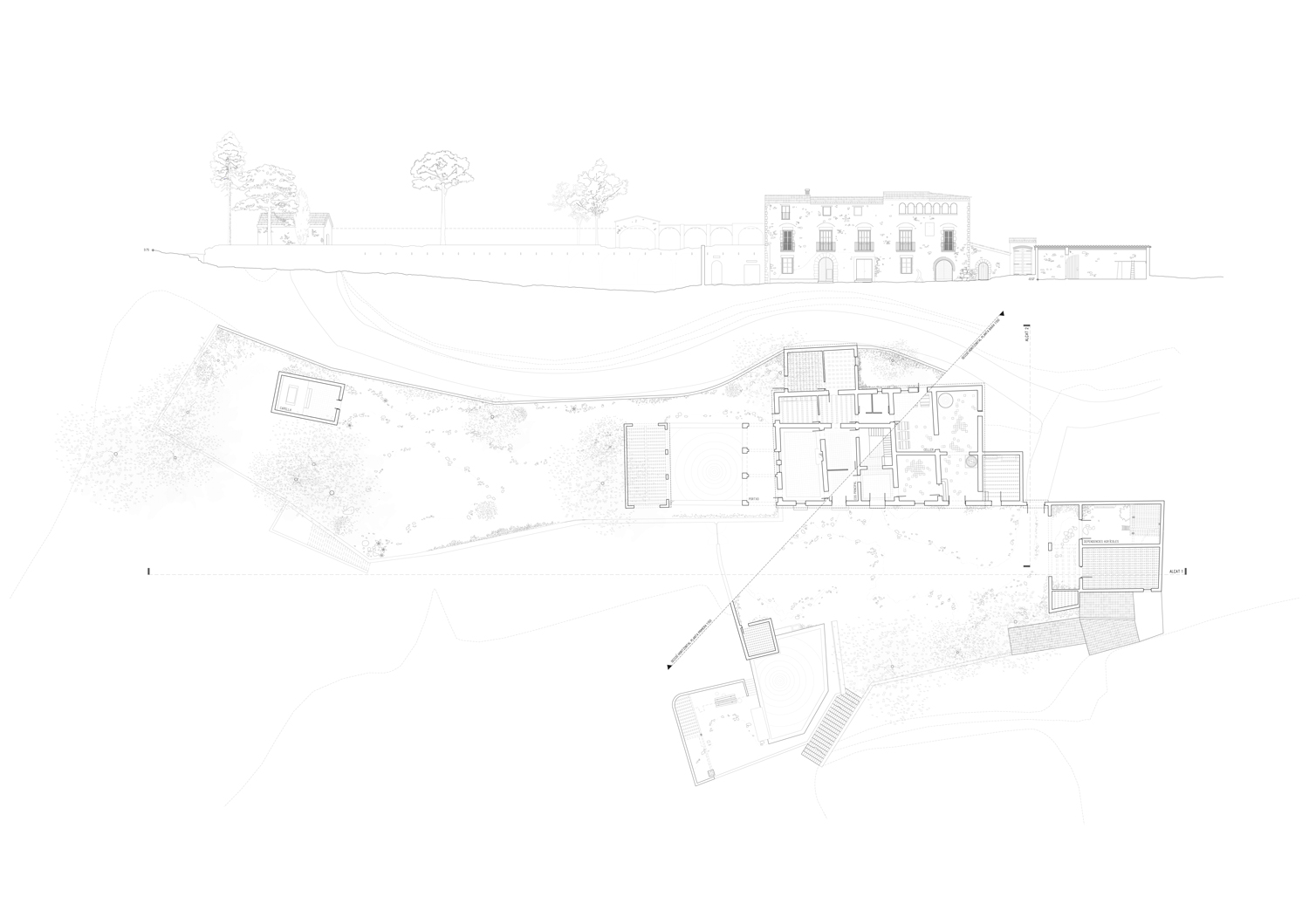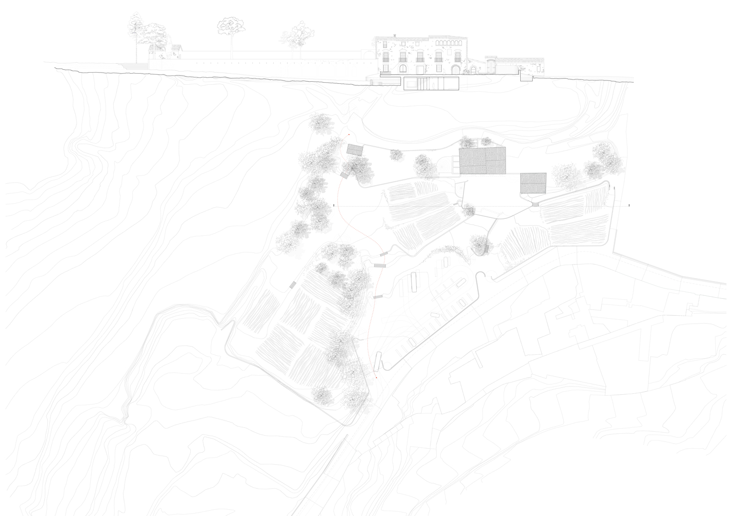 ☉ The path of a watercourse is an academic project by Marc Lencina for ETSA Barcelona designed in 2019. It is located in Badalona Spain in a countryside setting. Its scale is medium with a surface of 1.423 sqm. Key materials are stone and concrete.