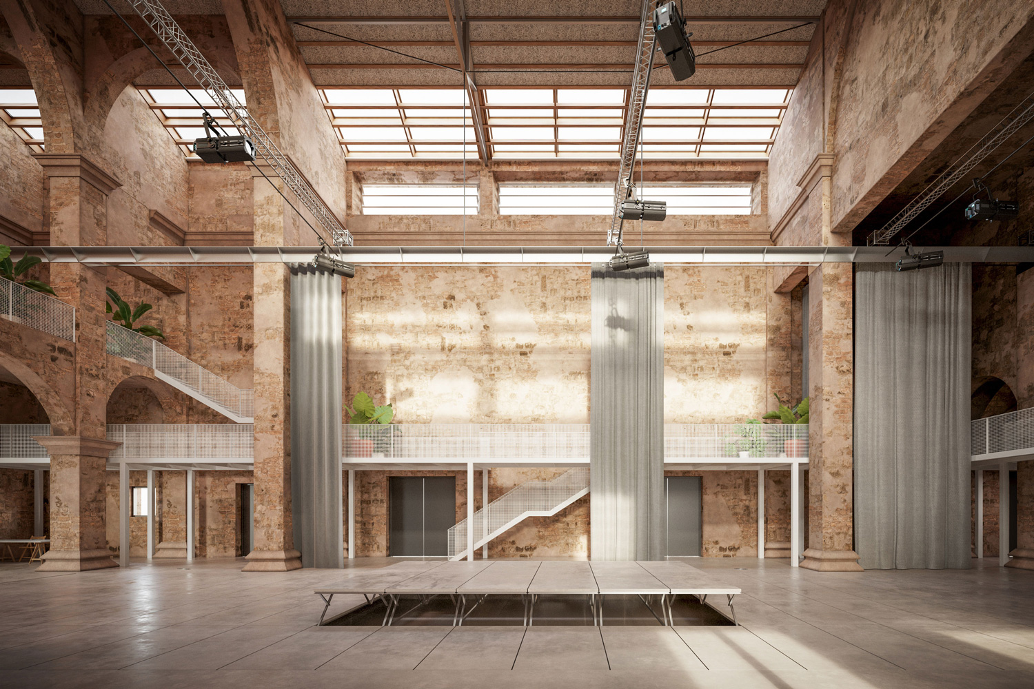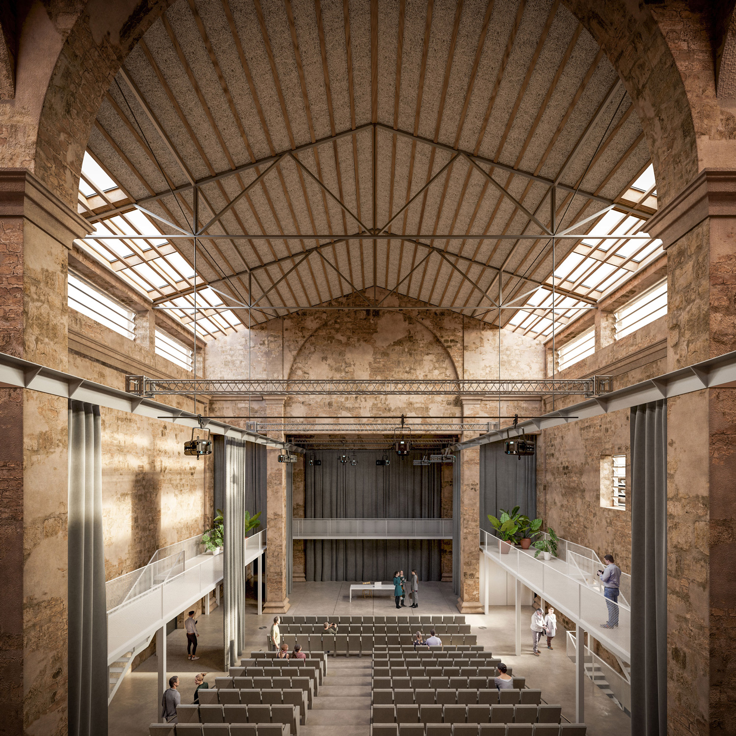 ☉ Theatre in a church is a thrid prize proposal by Bernat Pedro Planas and Pau Vidal for Ajuntament de Castelló d'Empúries designed in 2021. It is located in Castelló d'Empúries Spain in an urban setting. Its scale is medium with a surface of 1.257 sqm. Key materials are stone and metal. Play-Time collaborated as visualizer. Review the 2 proposals for the same competition.