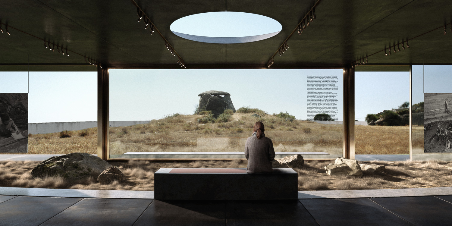 A simple museography progressively arises the dolmen thanks to a series of empty and opacity. The museum places it selves into the large scale territory and assumes its contemporaneity.