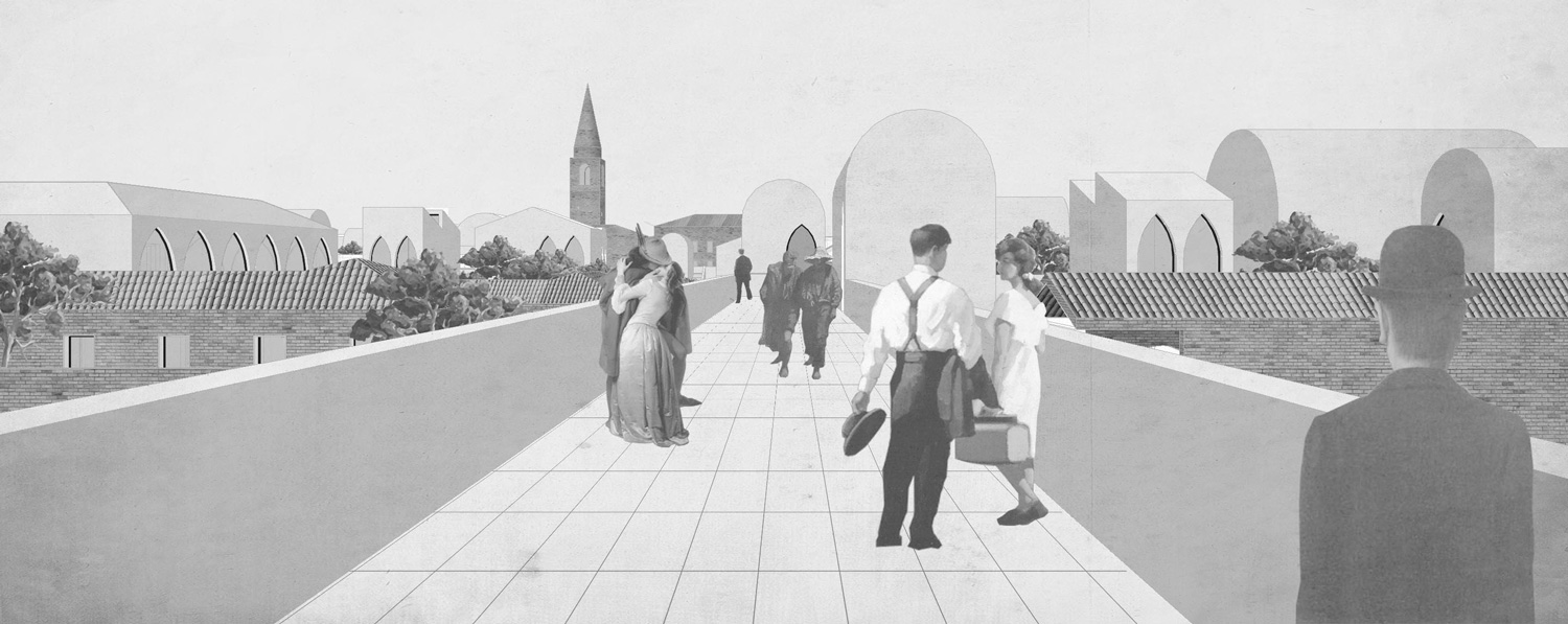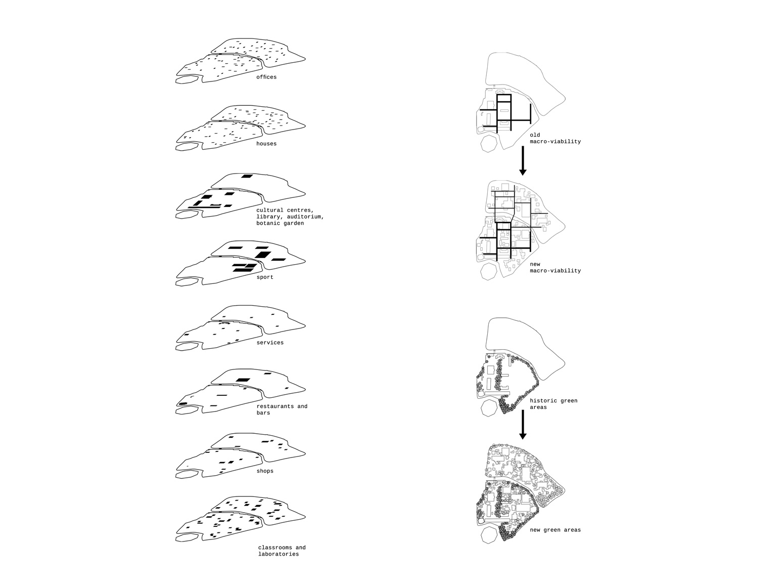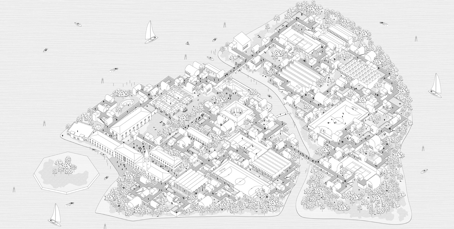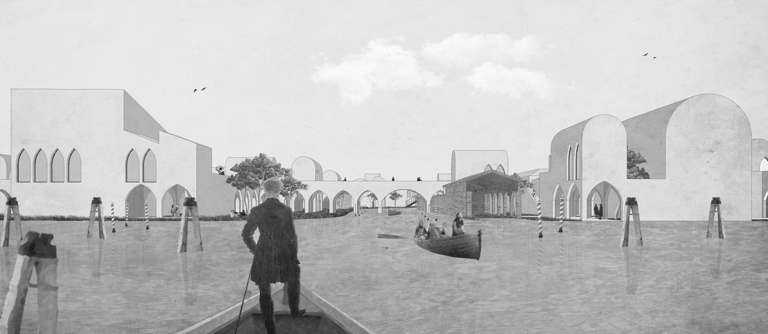 Luckily the typical internal sectorization of the universities is not, however, entirely possible to Poveglia, because of its natural island’s configuration that makes the direct relationship with the city more difficult. This is why in this case the university must also incorporate part of the functions that would normally exist in the surrounding city. In addition, the competition also requires the presence of residences in the project, which joined to the indirect relationship with the city, it means that for the most of the time, some students will spend all their time, day and night, on the island of Poveglia. So the project dialogues ideologically with Venice, and it is conformed like a real city, with its openings, its views, its chaotic appearance, but actually ordered, and especially with all its vital functions. It merges its most typical features, such as classrooms, libraries and offices, with some features characteristic of the city, such as shops, bars, restaurants, supermarkets, banks, barber shops, gyms and cultural centers, in a complete urban system.