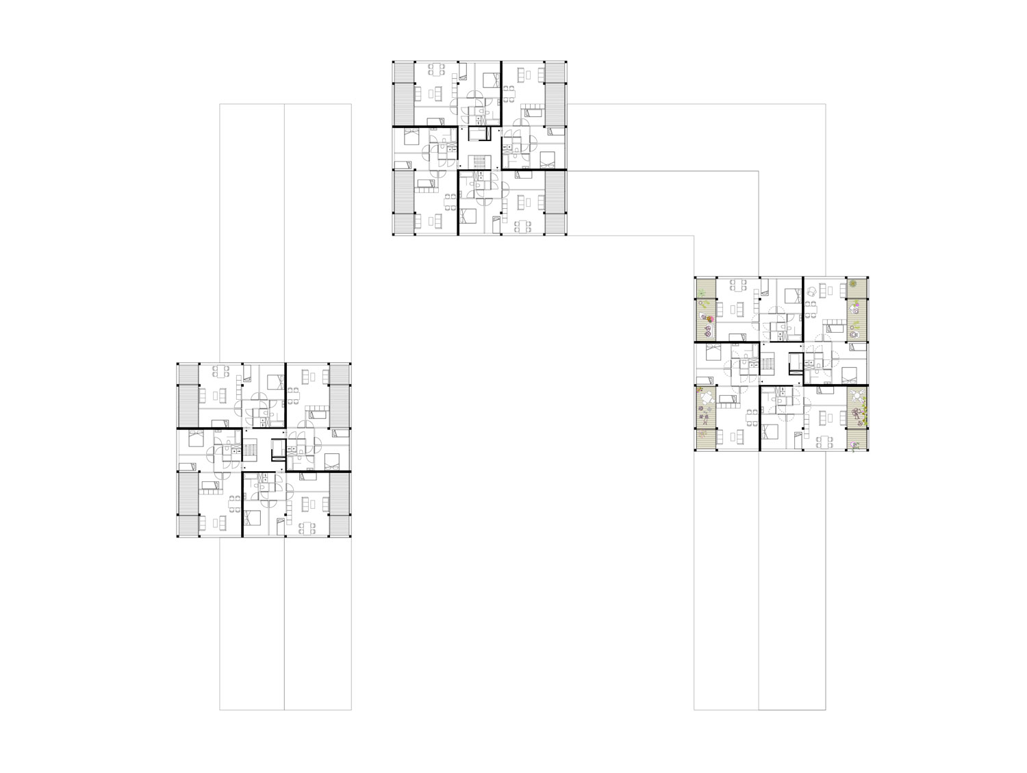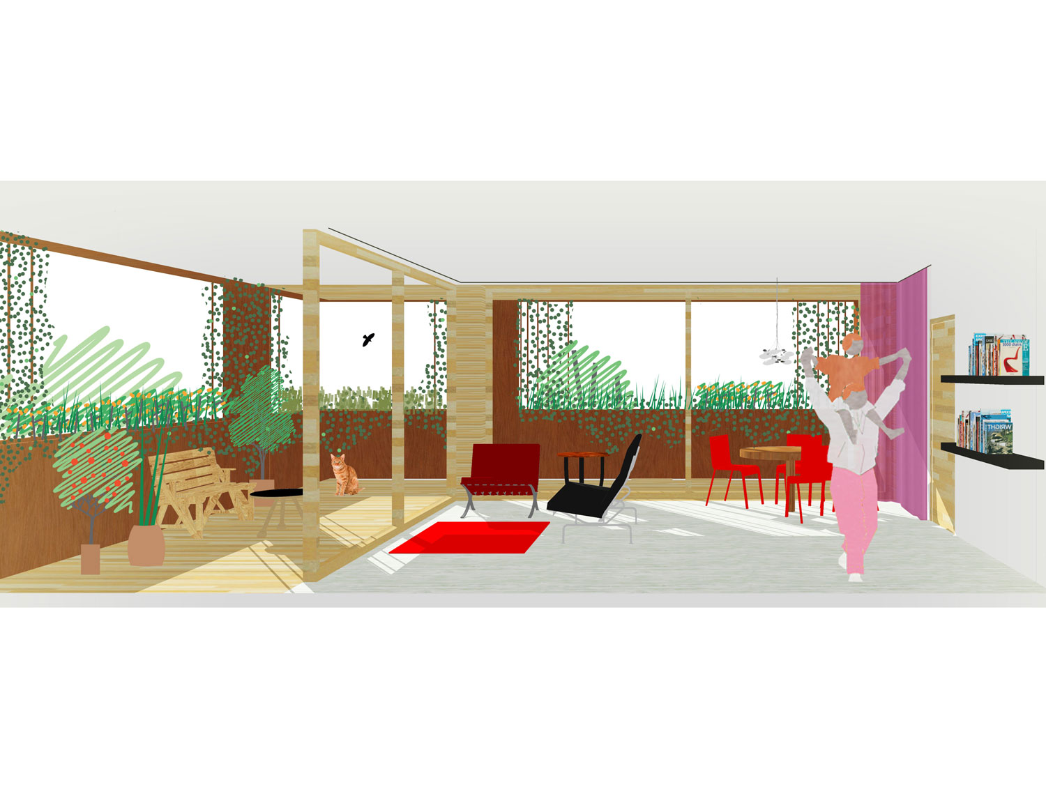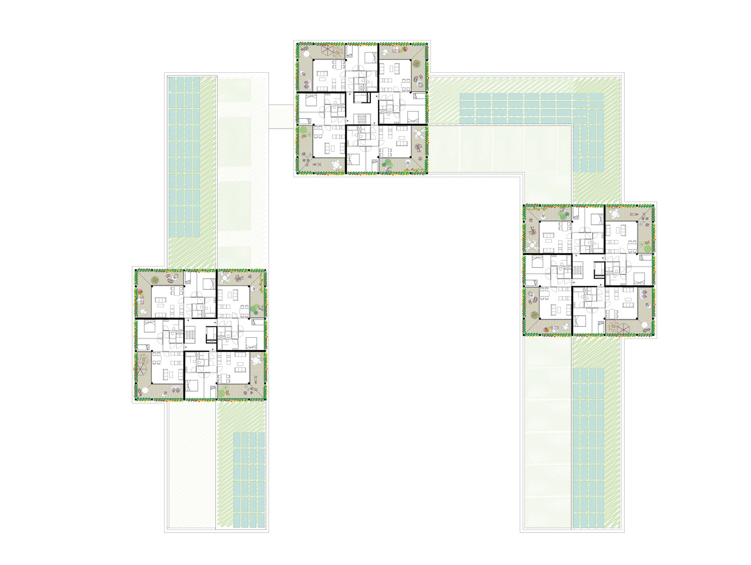 The ground floor houses offer direct contact with the park, the houses on the second floor have access to generous roof-gardens, the apartments in between have green balconies and the penthouses on top are placed in a private suburban garden. The apartments above the canopies will make use of passive solar energy for heating an each apartment has a winter garden. These semi climatized spaces function as an extension to the main living space for use in spring and summer. The wooden structural frame creates a flexible, healthy and sustainable building and it grants the building its distinctive architectural quality. The Urban Biotope combines the best of two worlds: in the middle of nature, it is as urban as an inner-city neighbourhood. Nowhere in the countryside you will find such an urbanity, nowhere in the city you’ll come across such a wild landscape.