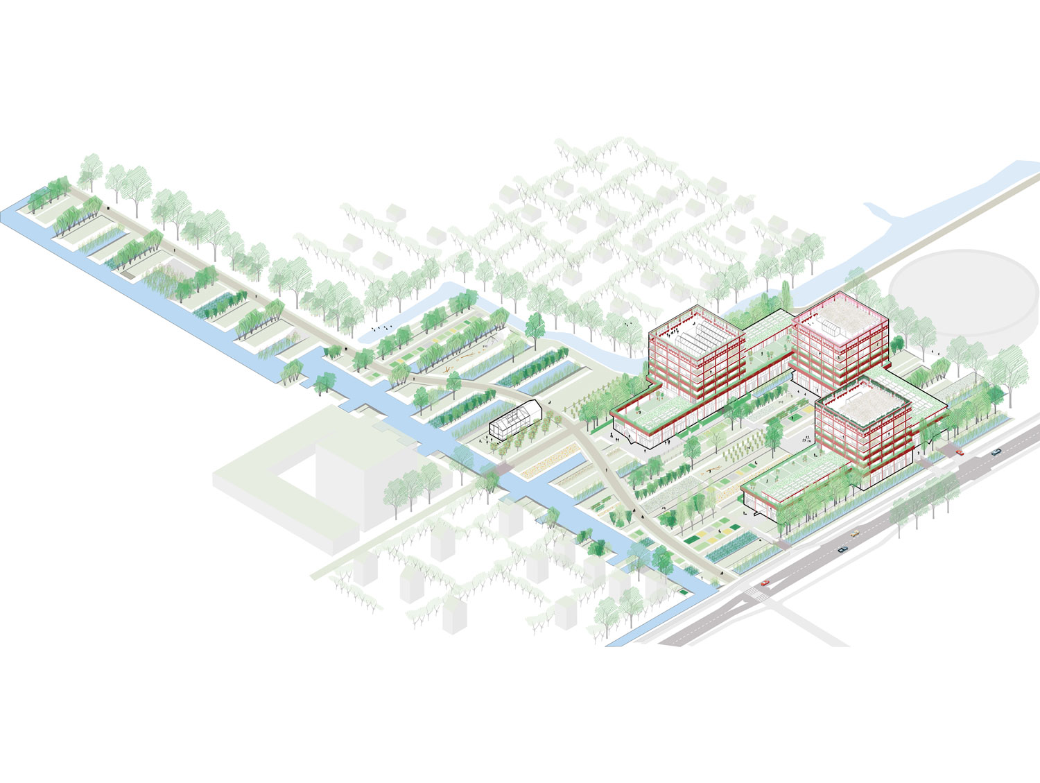 ☉ Urban Biotope is a proposal by CIVIC architects and Buro Lubbers designed in 2016. It is located in The Hague Netherlands in a countryside setting. Its scale is large. Key materials are wood and vegetal. VERO Visuals collaborated as visualizer. Concepts such as new development plinth tower green roof nature and productive landscape are explored.