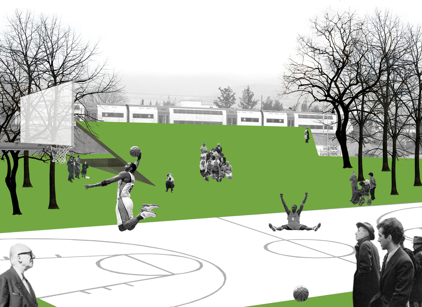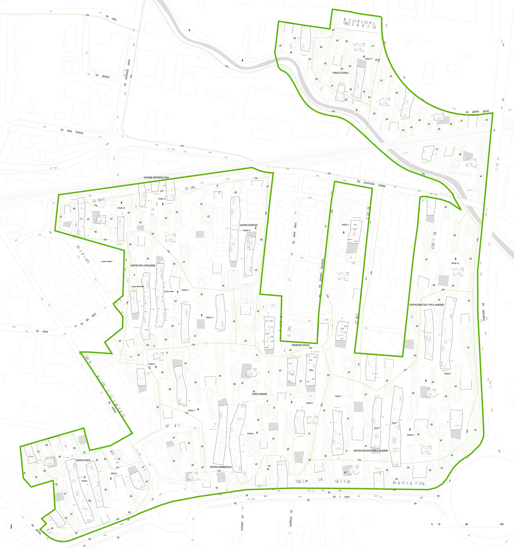 The territory assumes, in its new profiles of intervention, a varied yet uniform aspect. The vegetal zones distinguish themselves through the characteristics of the various essences: deciduous forests, shady in the summer, woodlands of ginkgo and maple, full of warm colors in the autumn, orchards that recall the nursery vocations of the territory. New urban gardens become meeting places, collective pertinent spaces, in which the resident acquires a right, lost today: the sensation of becoming manager of his own landscape. Public structures and social housing, interposed among the green zones, distributed in this space of the city, constitute the new physical fragments of the landscape like signs of an event serving the urban society, its mouvance.