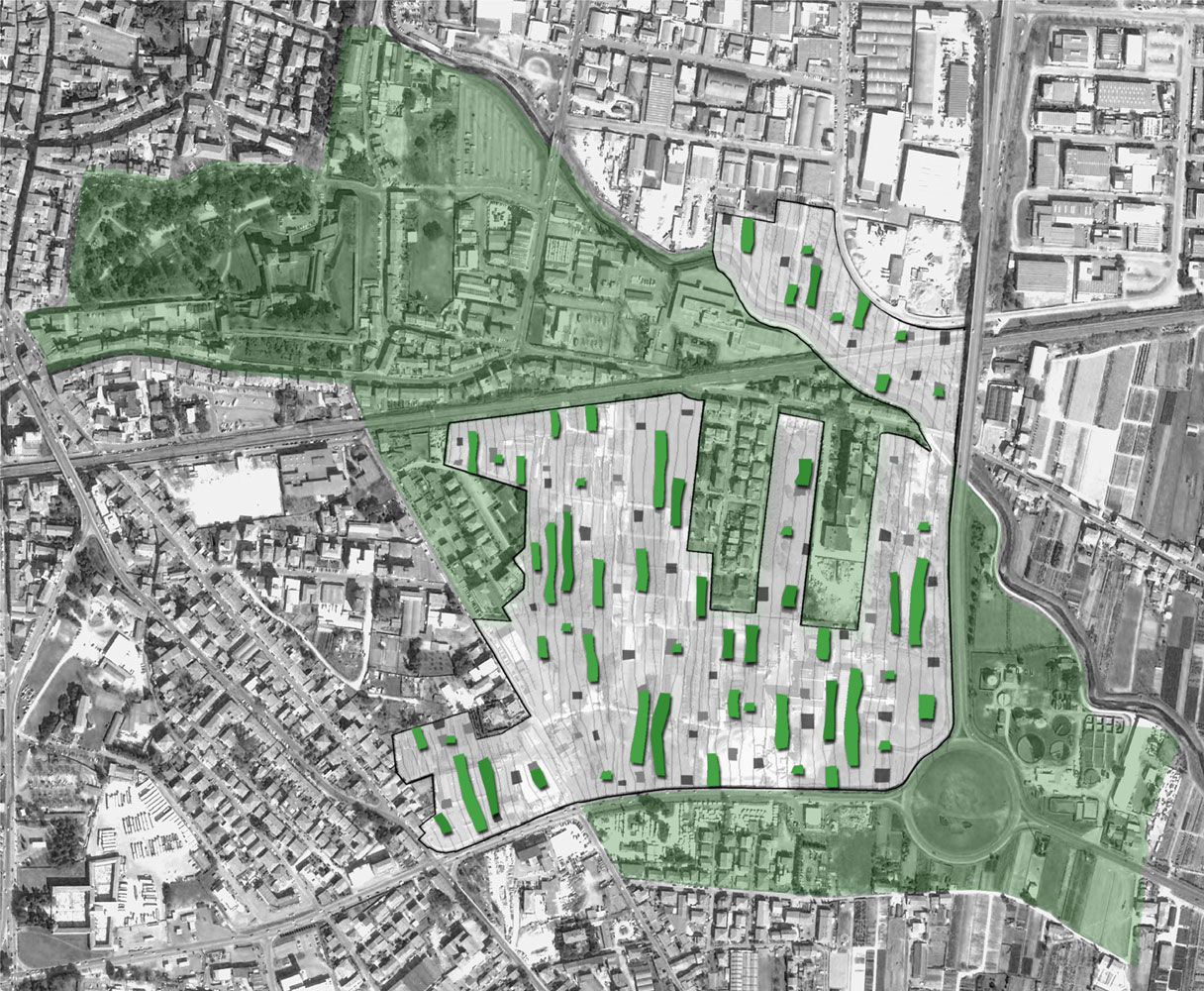 Life and sustainability of the territory represent the direction of the project, through an optimization of natural resources. In this periurban space, between the city and the country, the landscaper culture becomes the inevitable analysis. With regard to the text of P. Donadieu La société paysagiste, the relationship between society and landscape is noted. Landscape society, like urban society “that carries the values of the community built into a consolidated condition of making a community, of living together in a recognizable space, suitable to new daily practices, to the temporalities that require innovative spatial relations able to form more complex social models”. The high percentage of green is evenly distributed over the project area. Architectures in and of the landscape, volumes of horizontal development and recollection of greenhouses and nurseries in continuous dialog with new and old structures, design the profile of the new urban park. Semi-rural architectures and semi-architectural agricultures, like vegetable chromosomes, recall the origin of ancient urban gardens present in a historical city.
