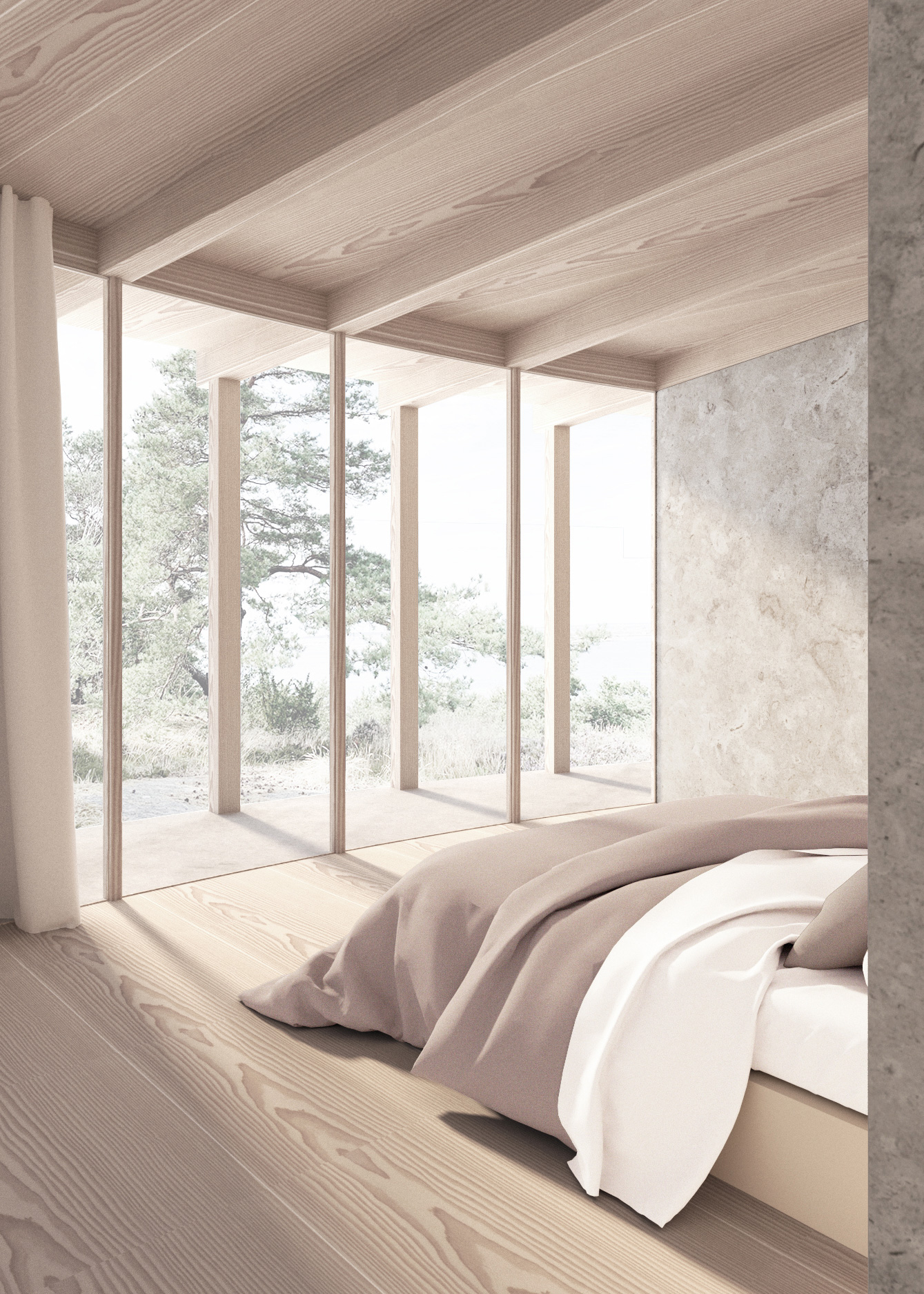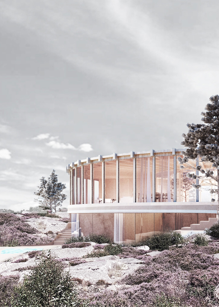 ☉ Villa O is a proposal by Kaka Arkitekter . It is located in Kullavik Sweden in a seaside setting. Its scale is small with a surface of 500 sqm. Key materials are concrete and wood.