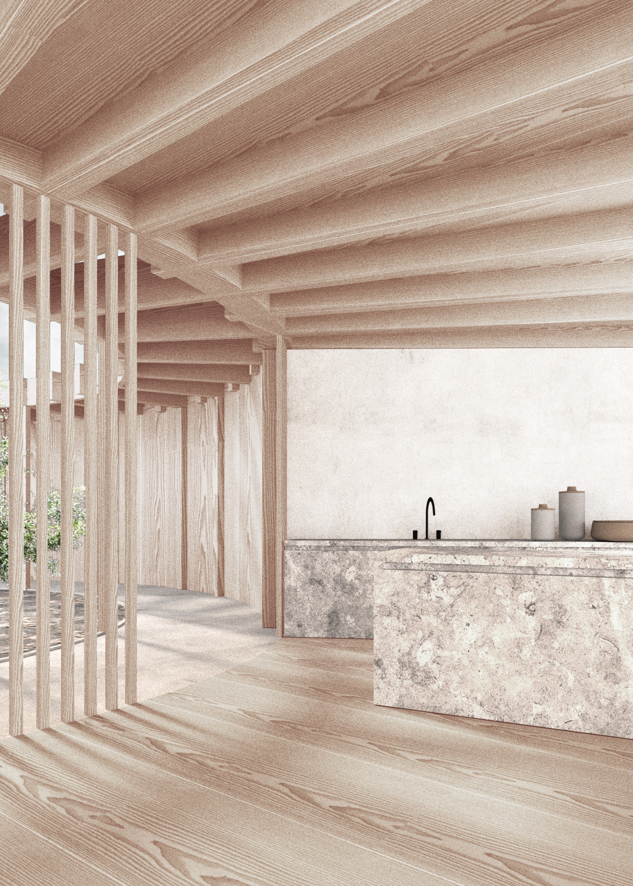 On this lot Kaka Architects has designed Villa O, a minimalistic, circular residence in two stories, made of wood, glass and limestone where the surroundings have become part of the structure.