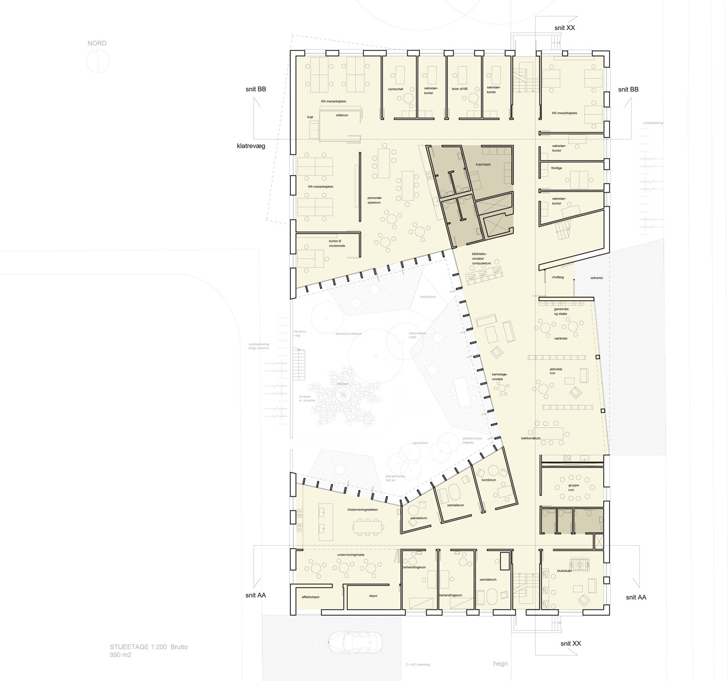 ”Villa Vita” is a counselling facility for cancer patients, where they can receive advice and support, therapy and exercise, and participate in groups and courses. The centre is operated by the Municipality of Copenhagen and The Danish Cancer Society. The centre is designed to appear as a distinct and coherent building, recognizable from all sides of the site, and thus supporting the facility’s brand as a unique service. The building is informal and welcoming: To avoid an institutional feel, and ensure the necessary sense of secureness for patients and staff, the interior layout is broken down into smaller units linked by central social spaces.