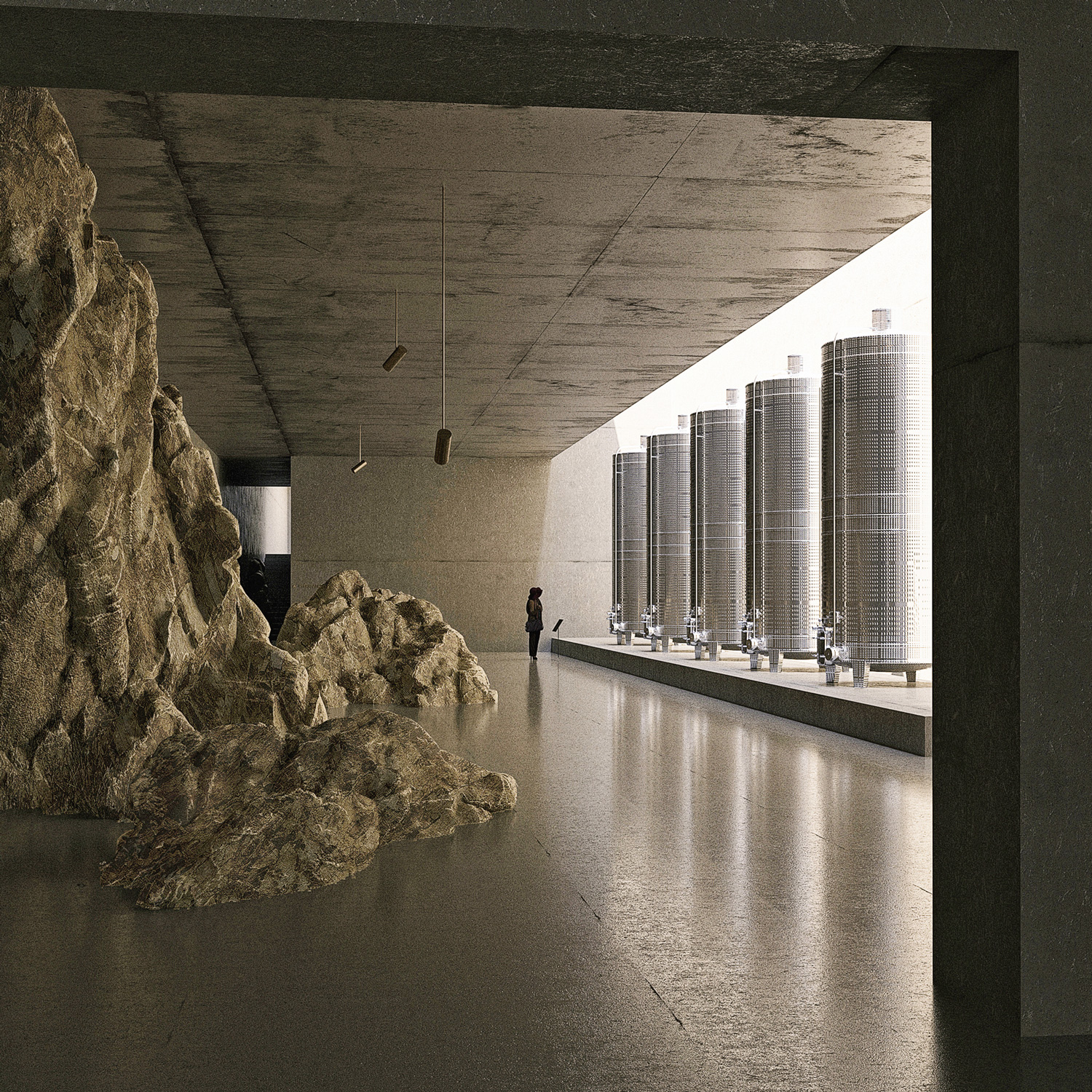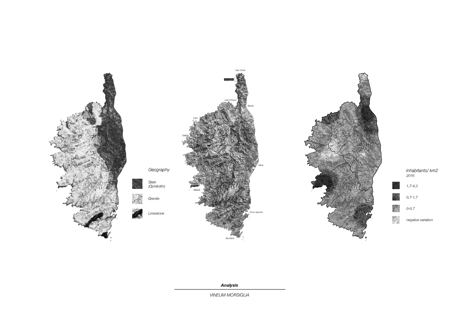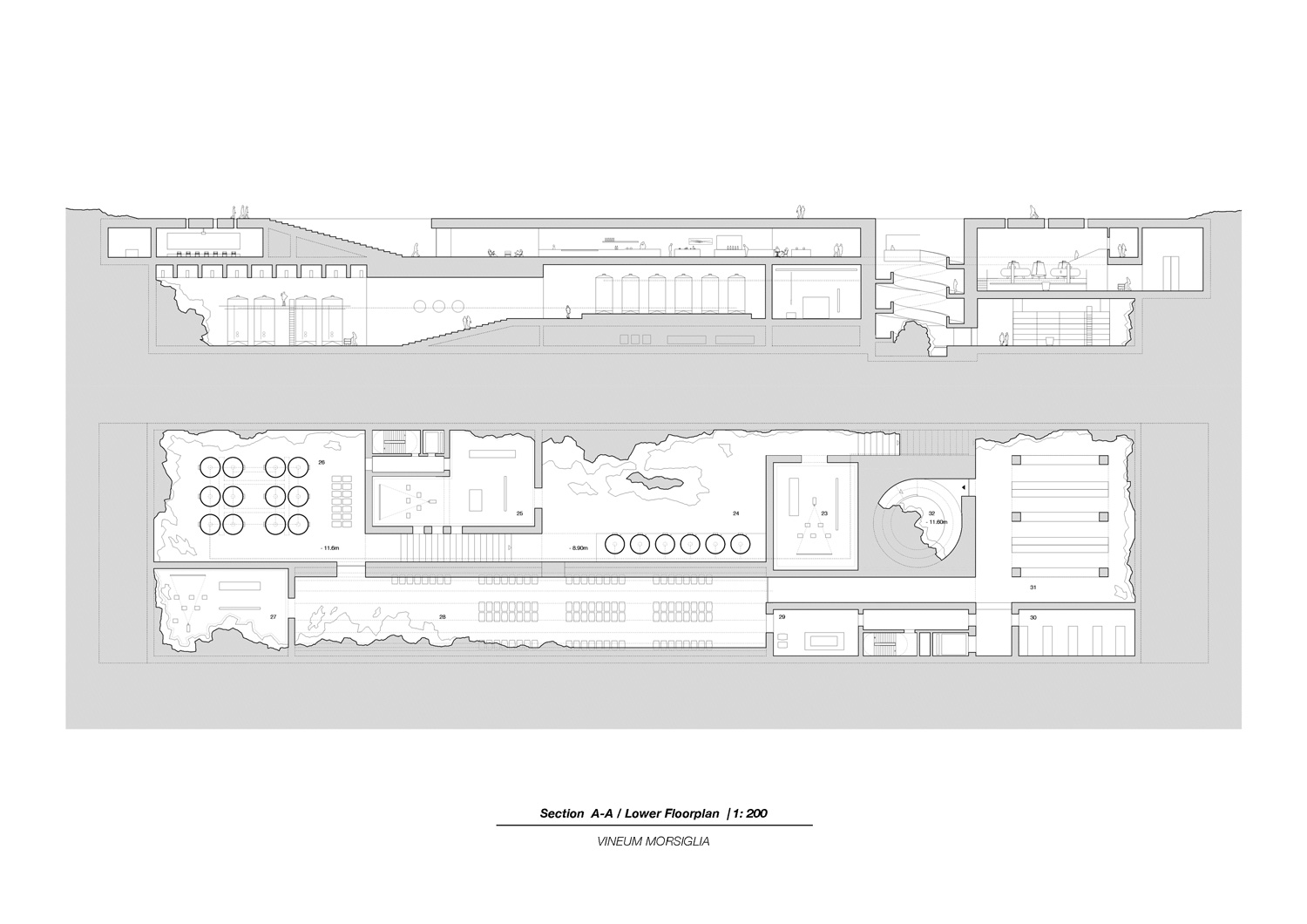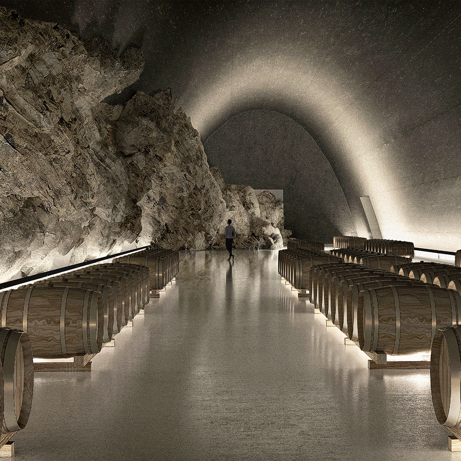 ☉ Vineum Morsiglia is an academic project by Jannis Petereit designed in 2020. It is located in Corsica France in a seaside setting. Its scale is medium with a surface of 7.000 sqm. Key materials are concrete and stone.