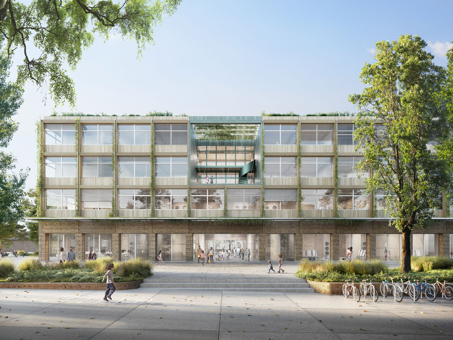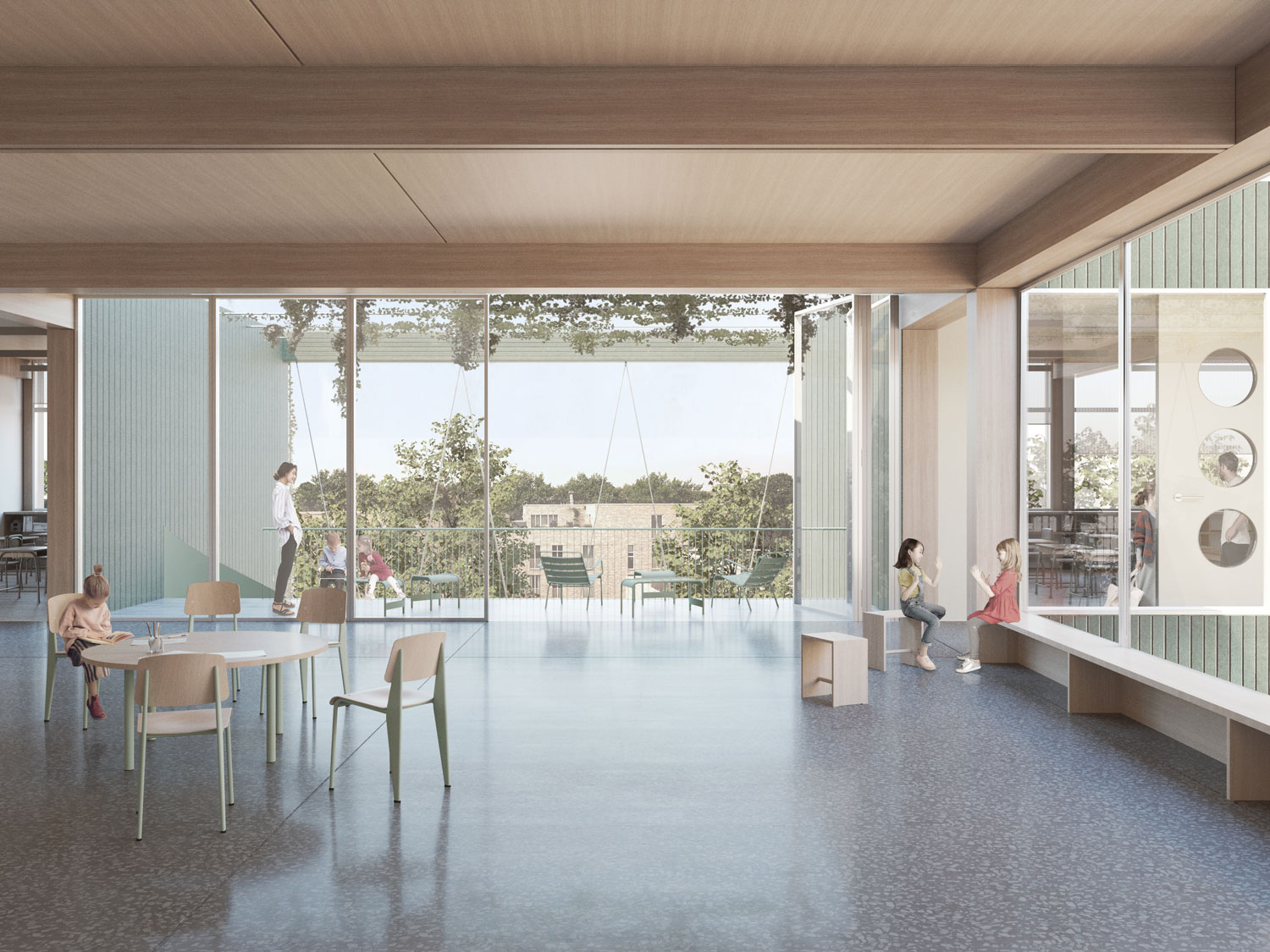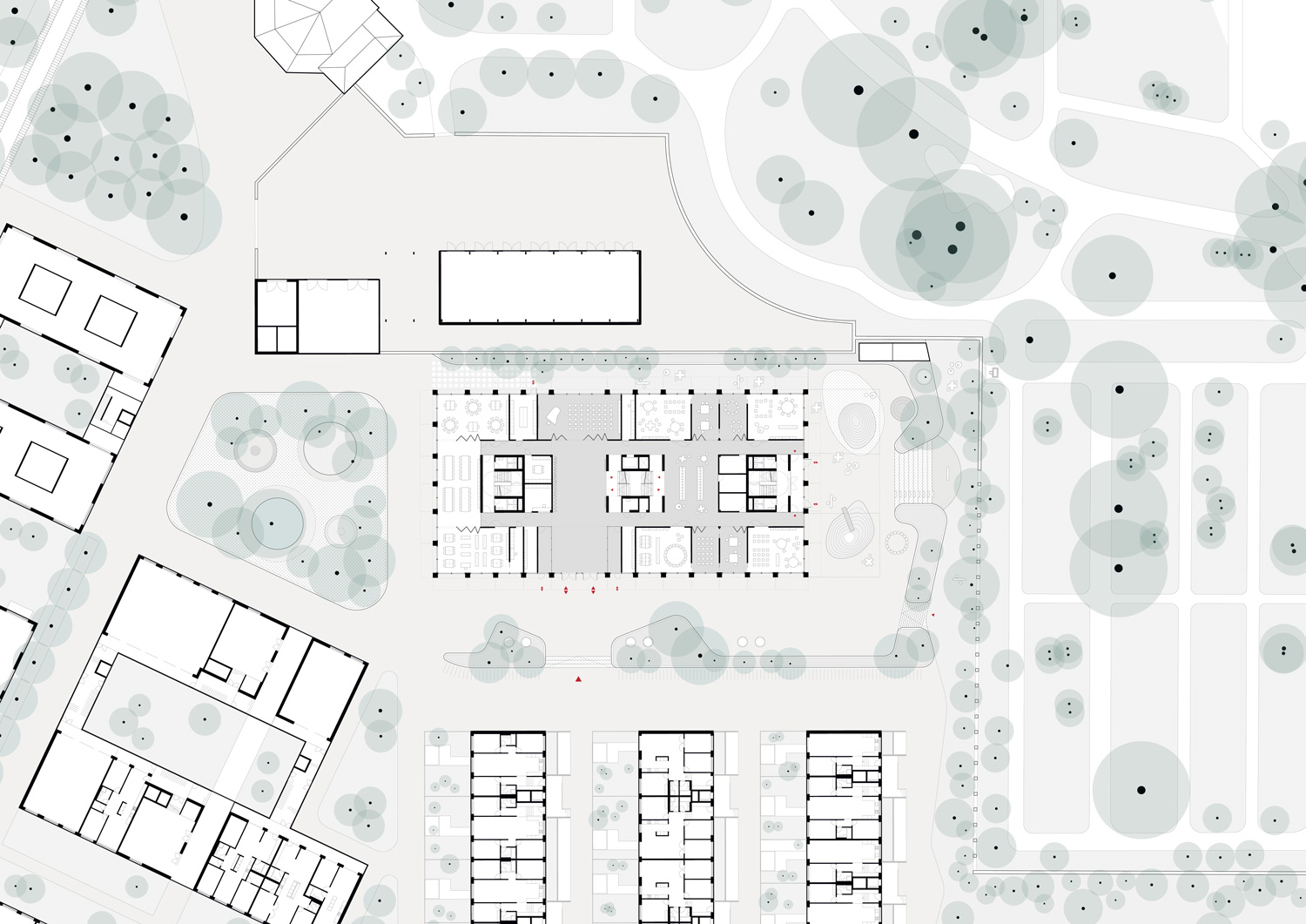 ☉ Walkeweg Primary School is a proposal by Estudio DIIR designed in 2021. It is located in Basel Switzerland in a park setting. Its scale is medium with a surface of 9.600 sqm an estimated budget of 34.000.000 € and a ratio of 3.542 €/sqm. Key material is wood. Play-Time collaborated as visualizer.