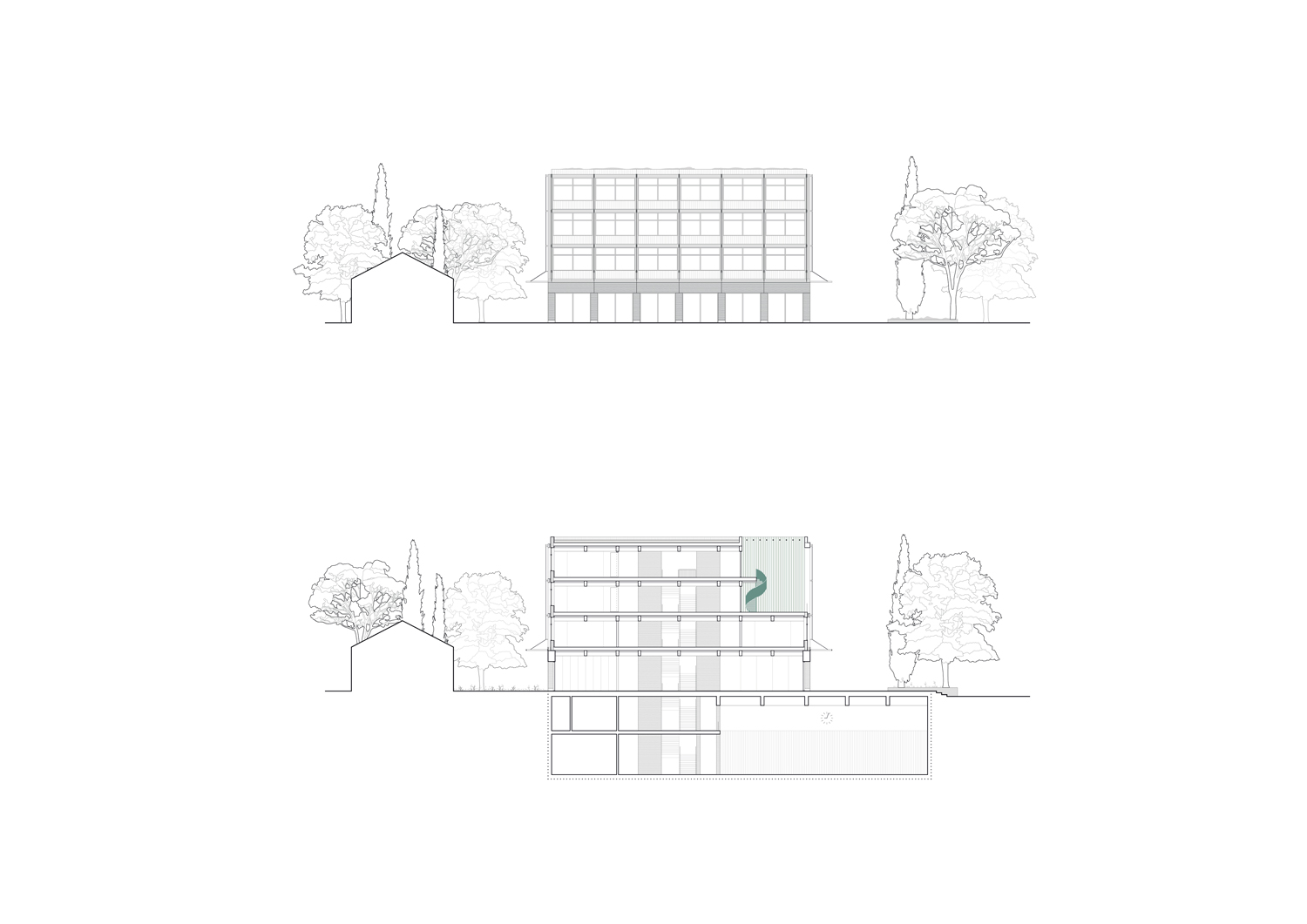 Building’s footprint aims to be minimal, reducing the impact of CO2 both in the design phase and in its useful life. The environmental impact due to the use of materials is the main impact on NZEB buildings if we consider their life cycle. The proposal uses low-treatment organic and mineral materials to solve the structure and the enclosures. The interior finishes and the vertical partitions will be made with organic and recycled material, reducing the impact and guaranteeing adequate indoor air quality.